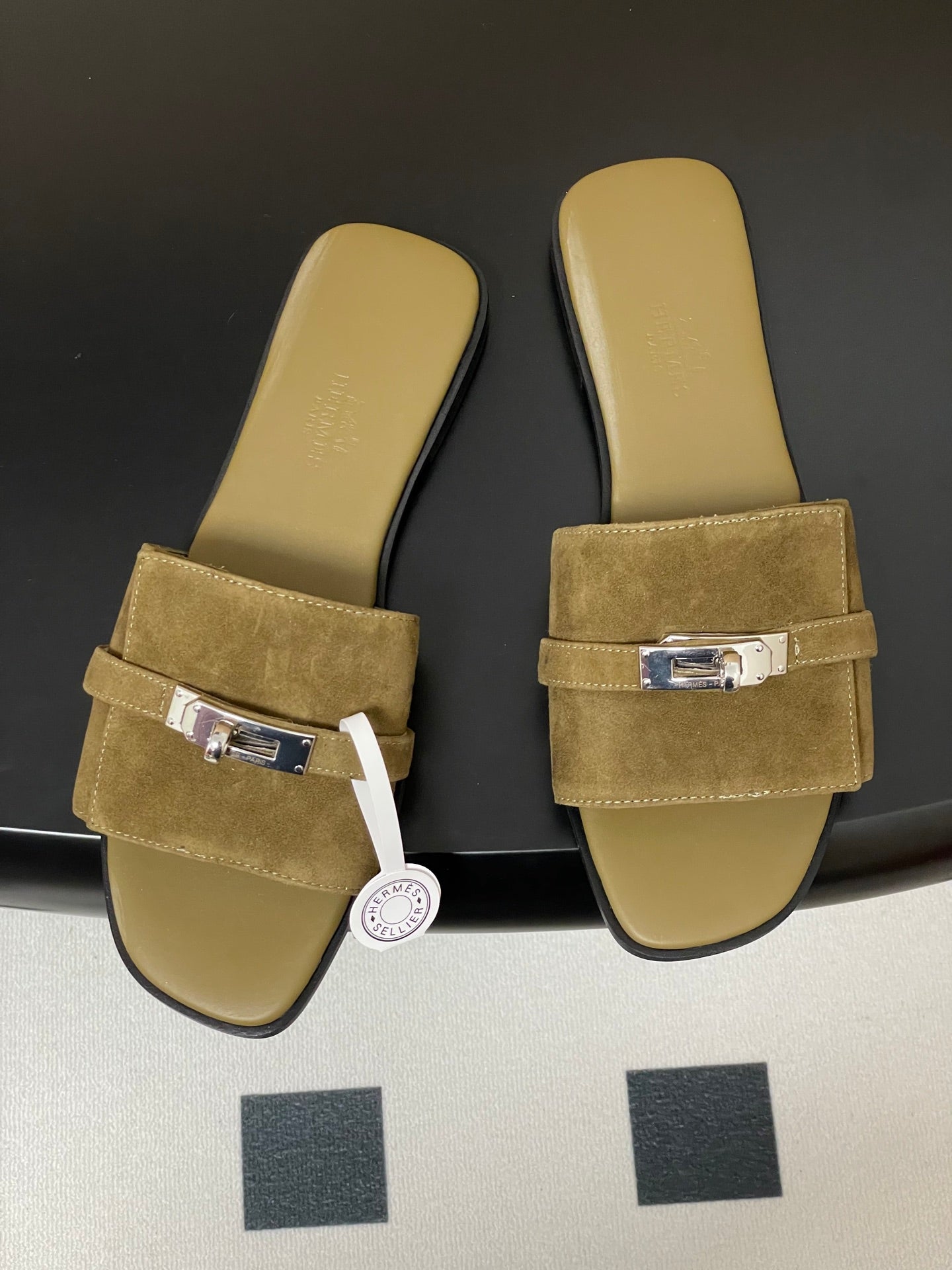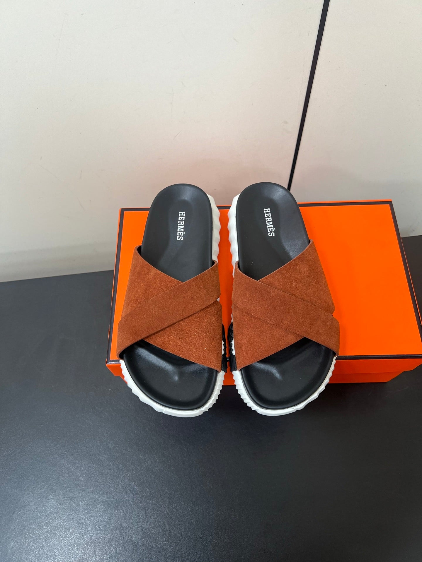 HM Oran Sandals Brown Sliver Calfskin 312774