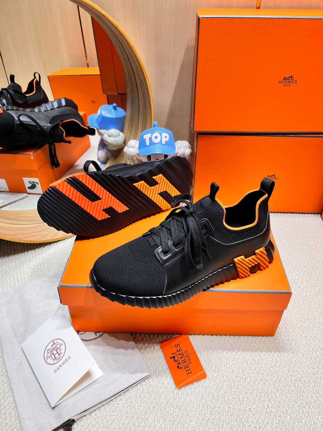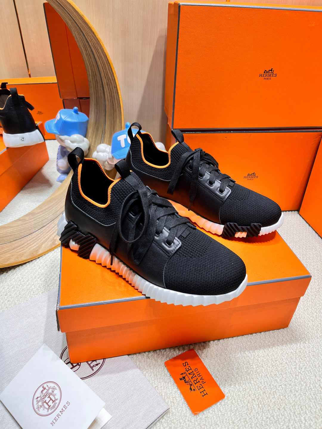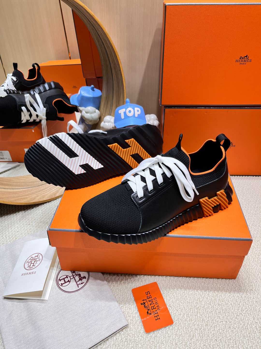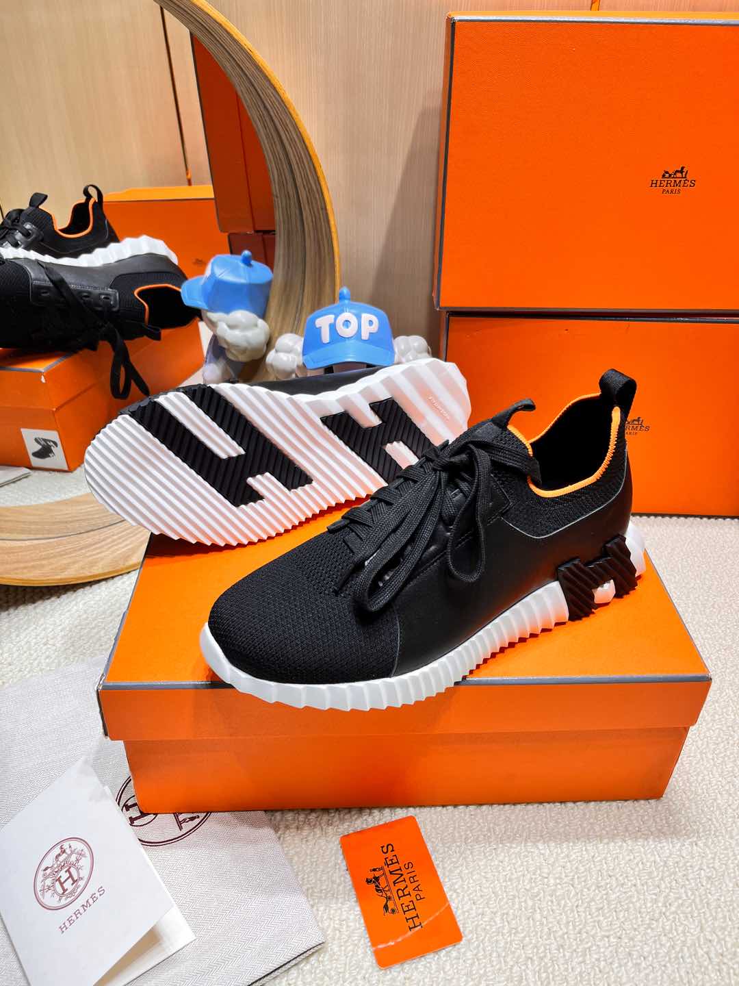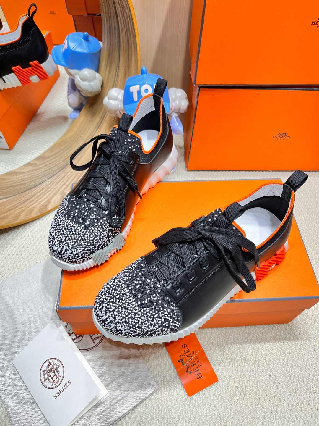 HM Depart slip-on Sneaker White Logo Black Knitted fabric and Calfskin 206335