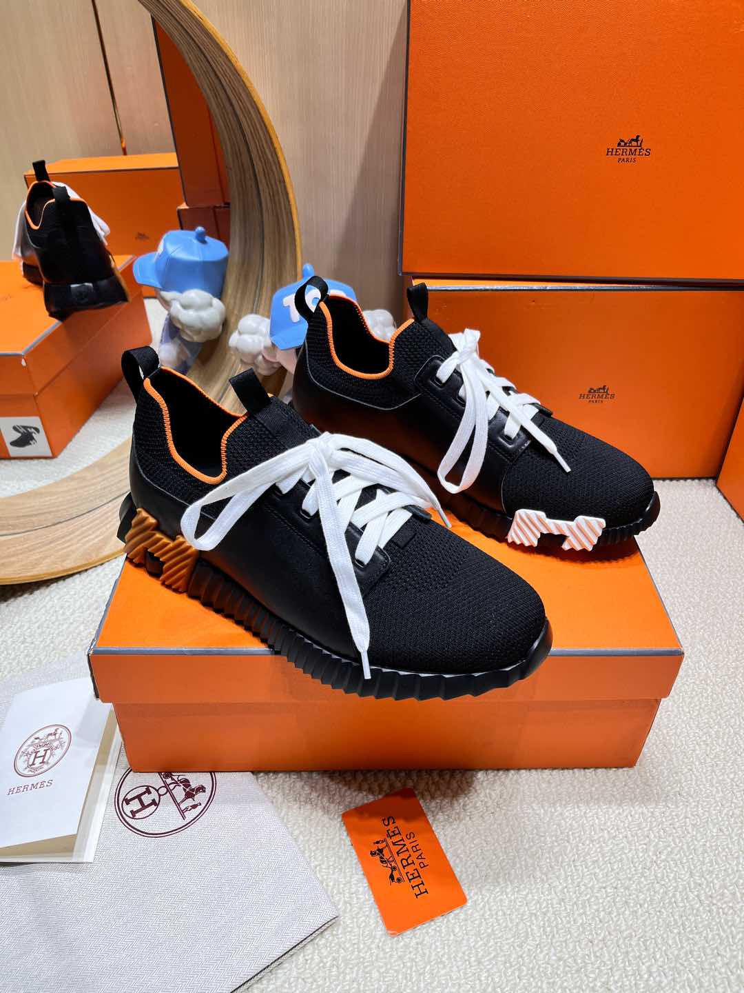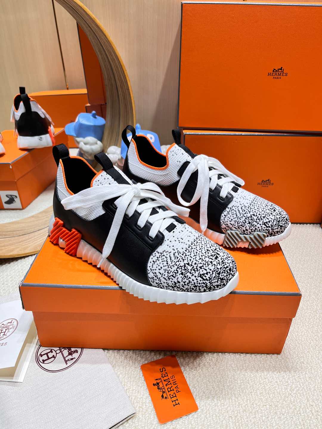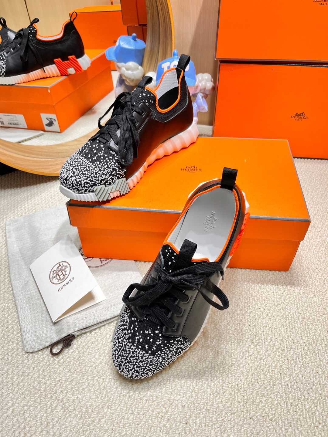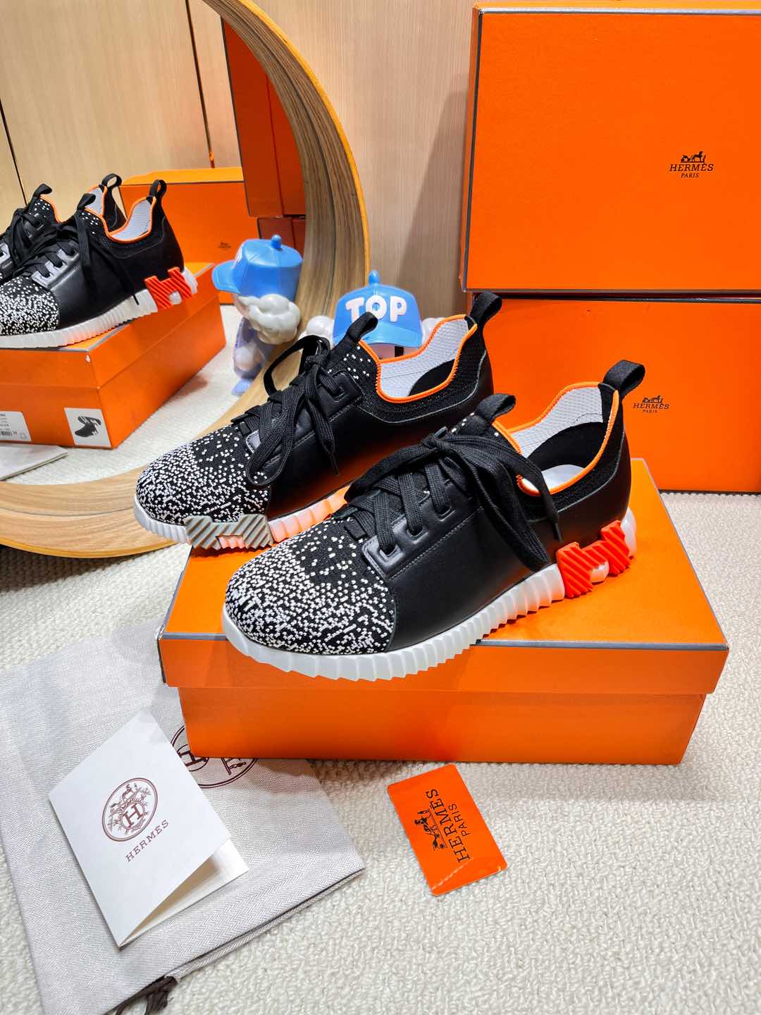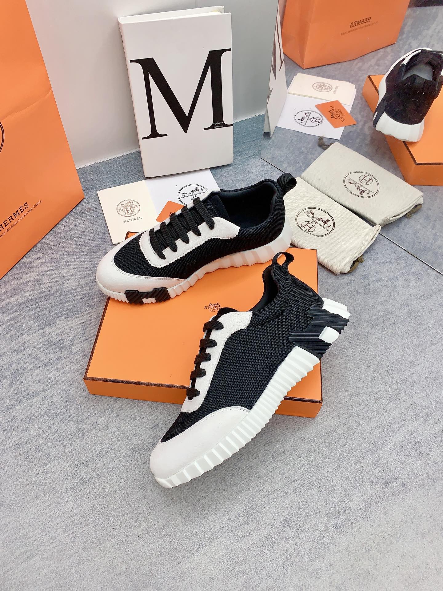 HM Depart slip-on Sneaker White Logo Black Knitted fabric and Calfskin 206335