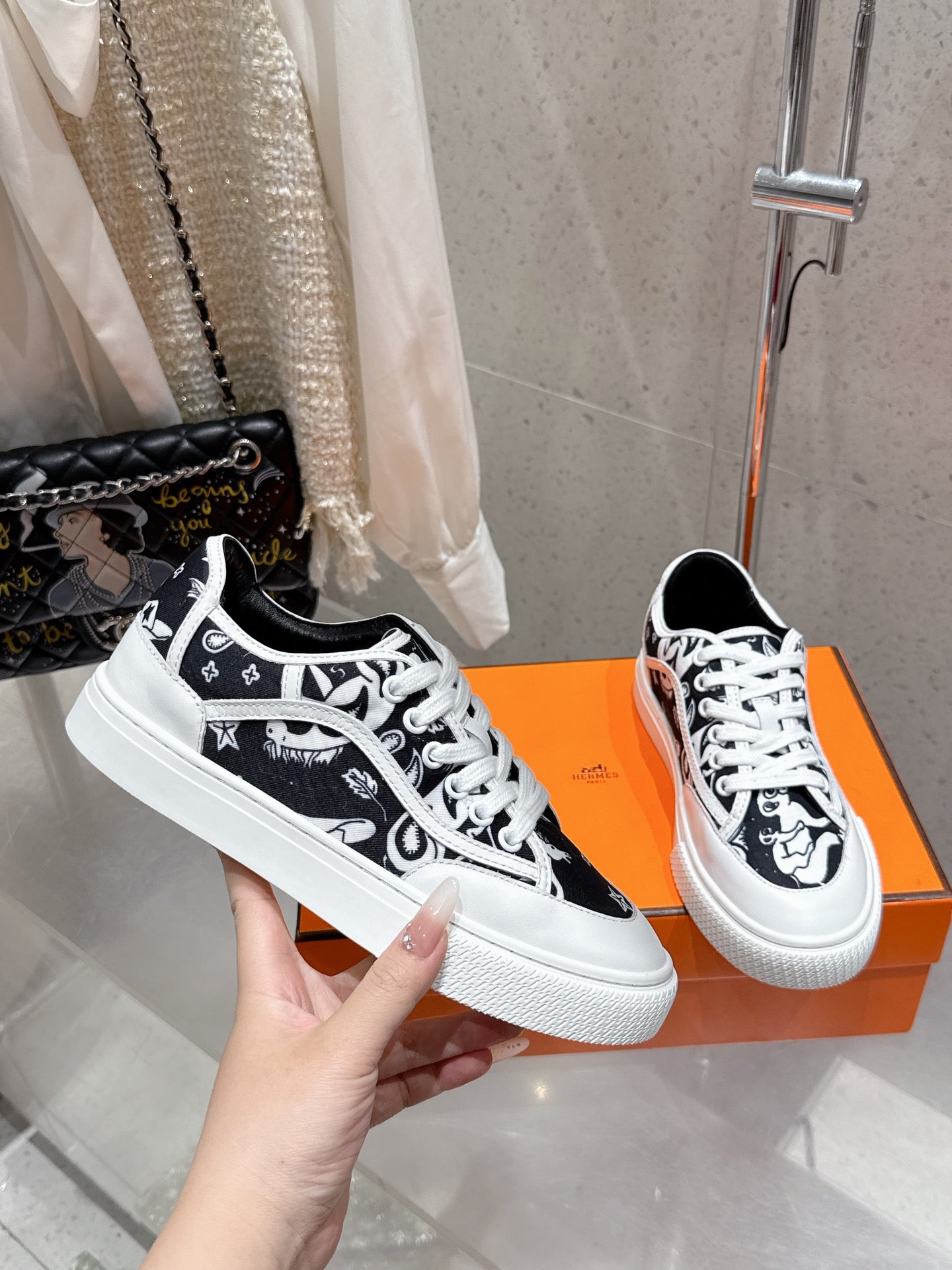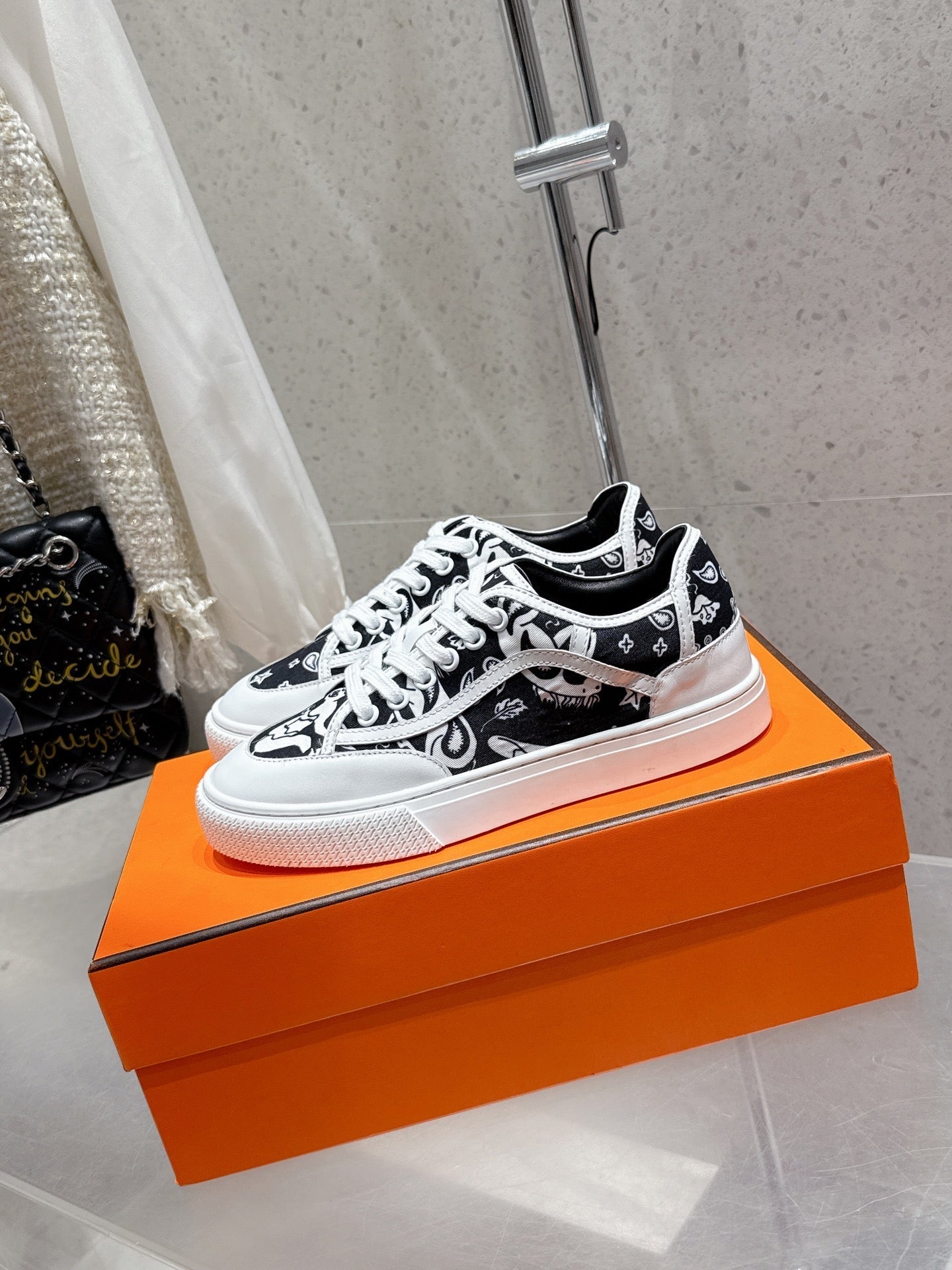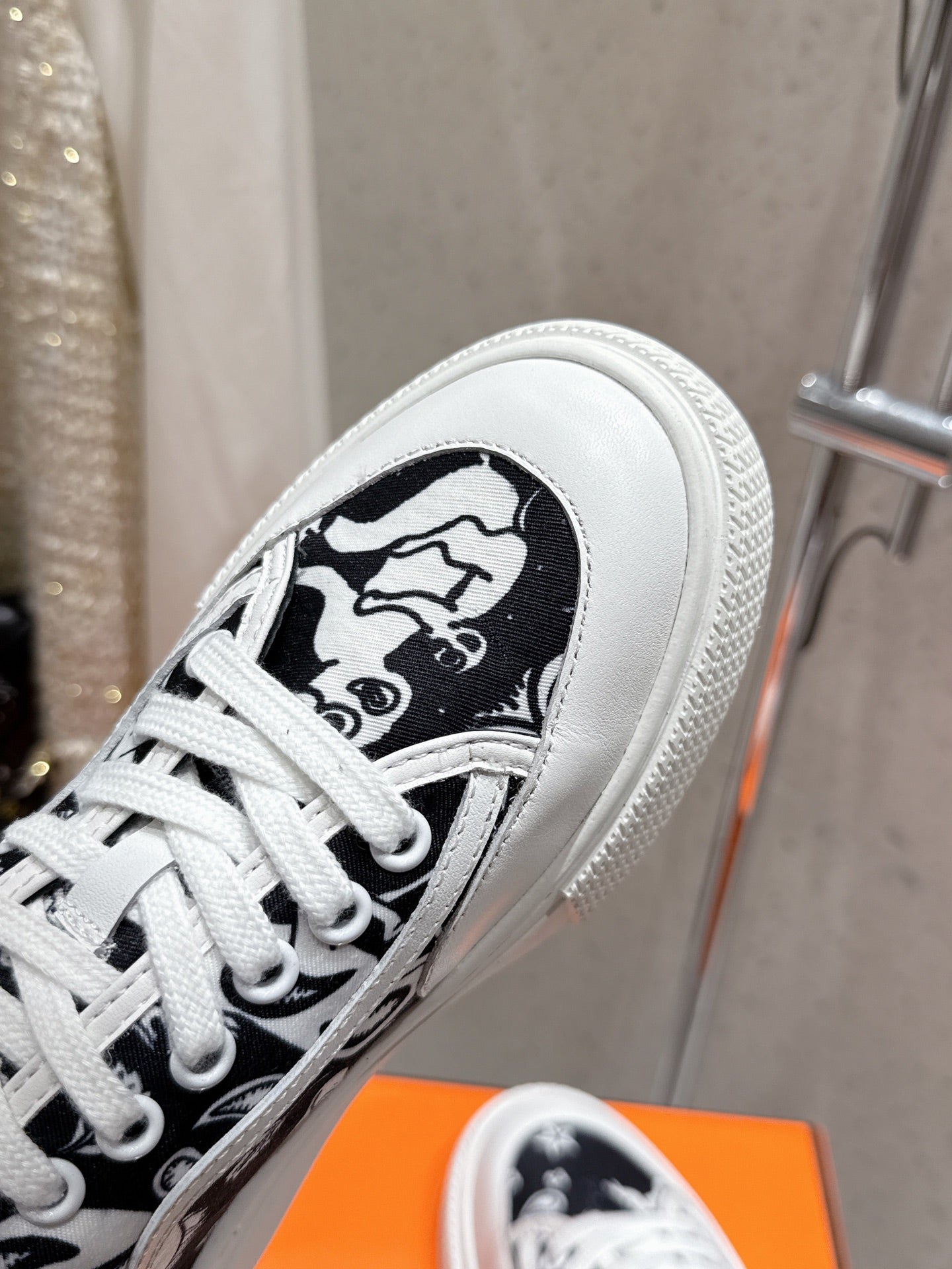 HM Get Sneaker Blanc Prunoir Canvas and Calfskin 204766