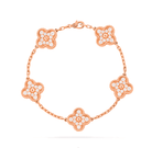 CLOVER 5 MOTIFS PINK GOLD DIAMOND BRACELET