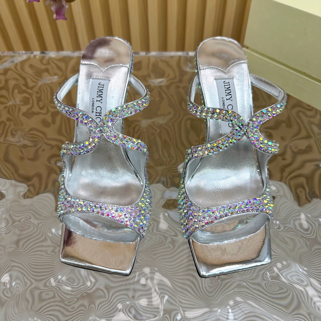 Jimmy Anise 105mm In Multicolor Pearl Studded Lambskin Mules 581536