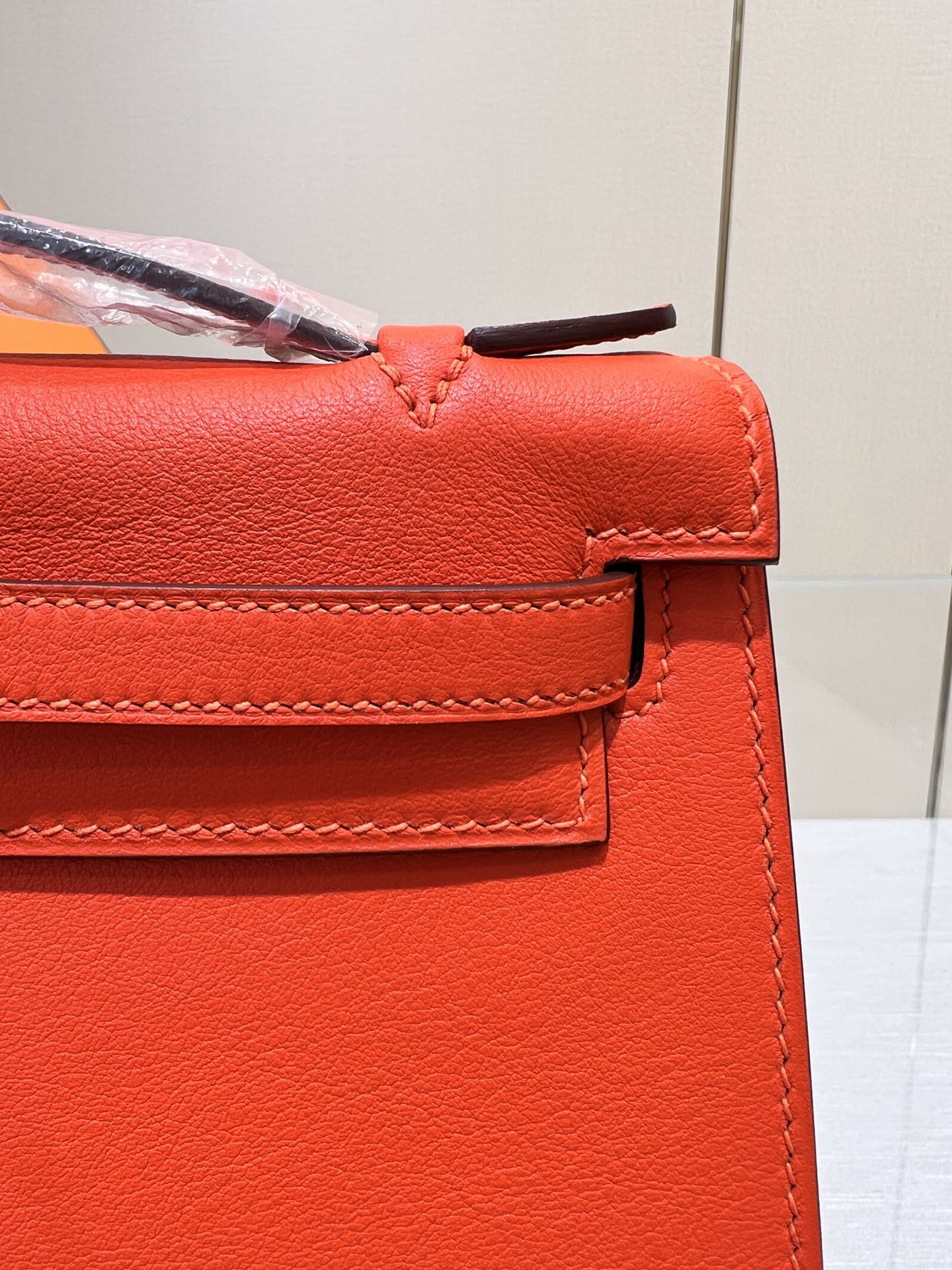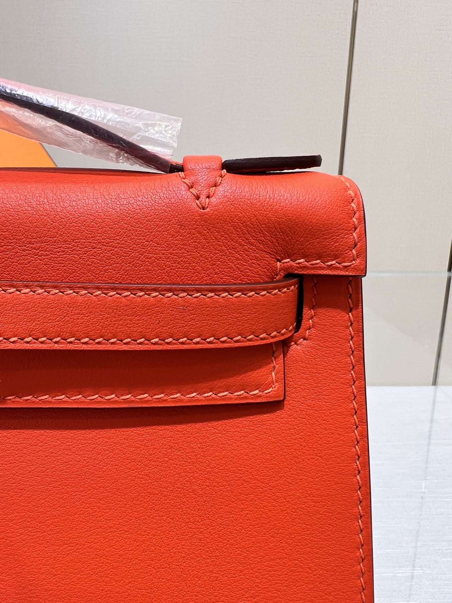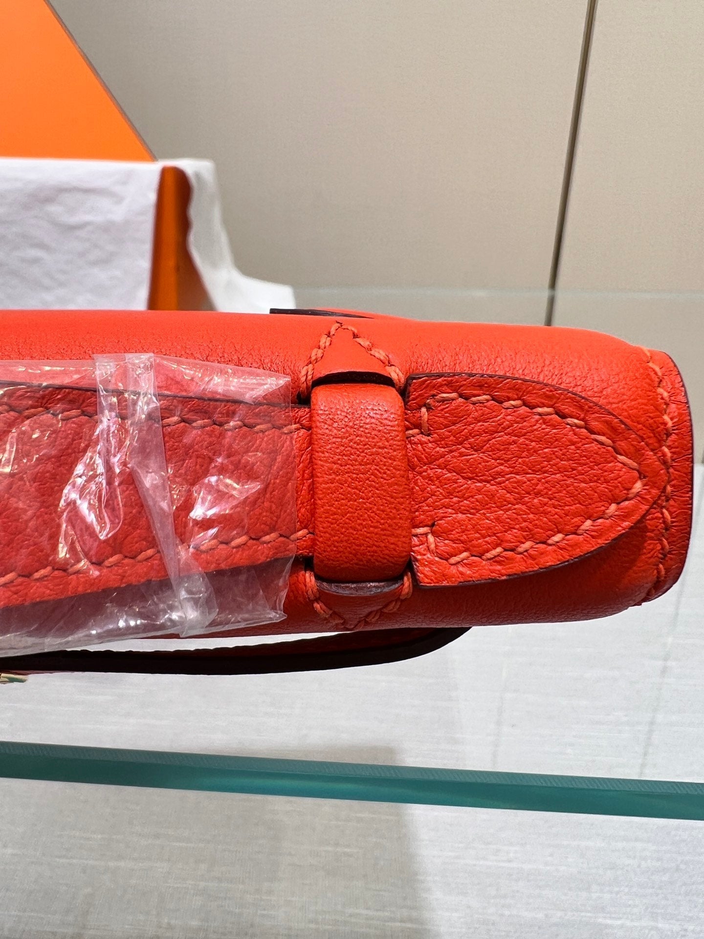 HM KELLY POCHETTE 22CM ORANGE SWIFT GOLD HARDWARE