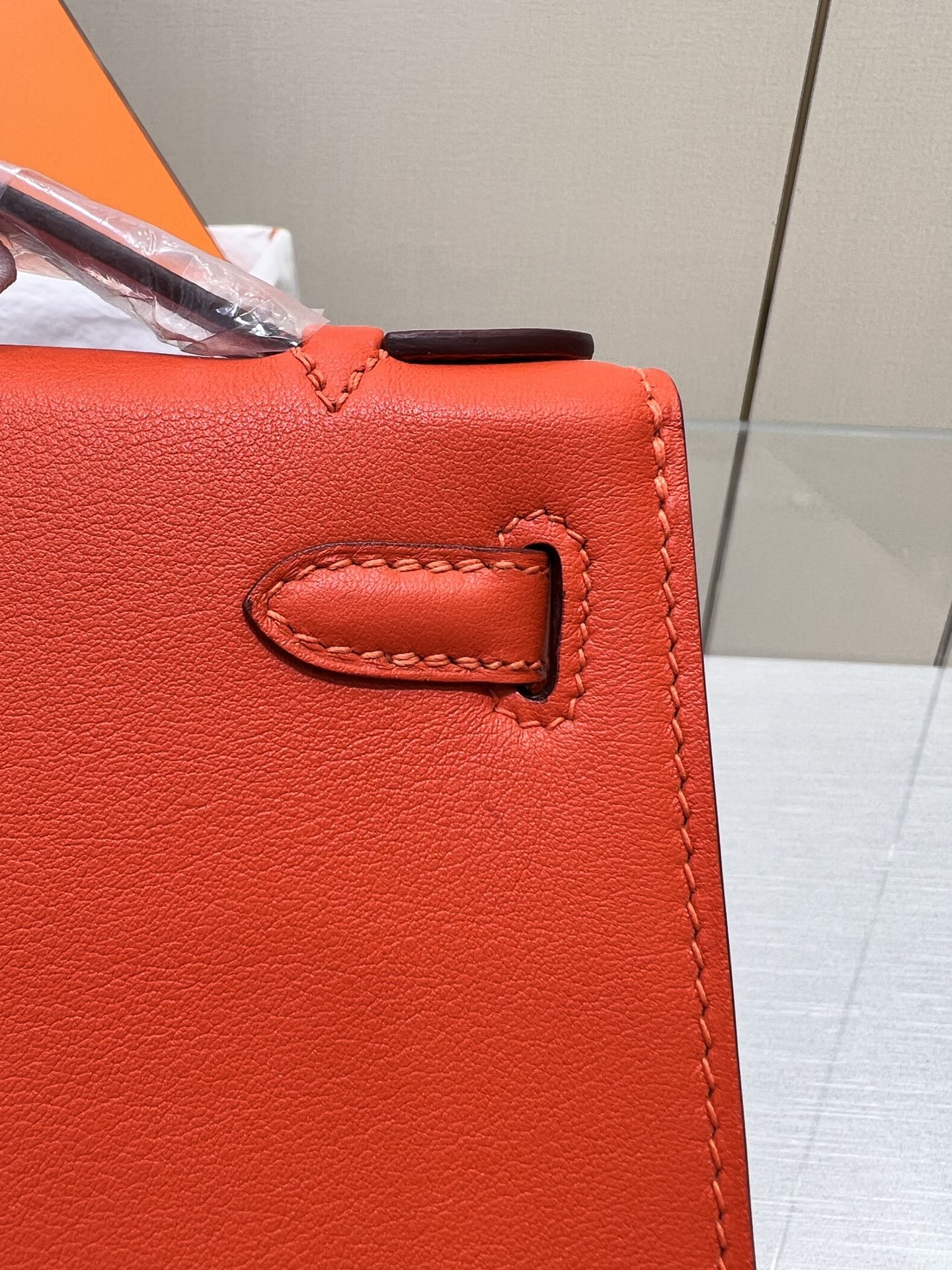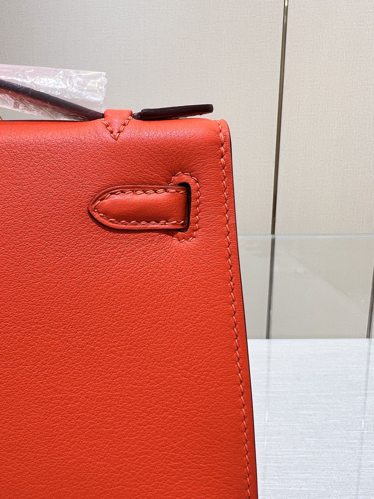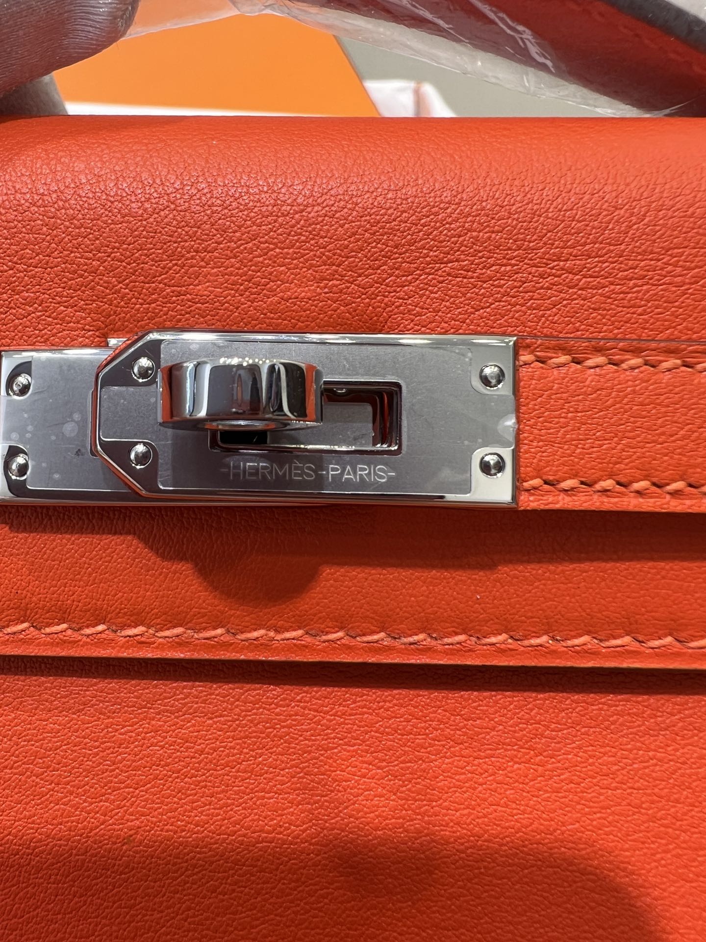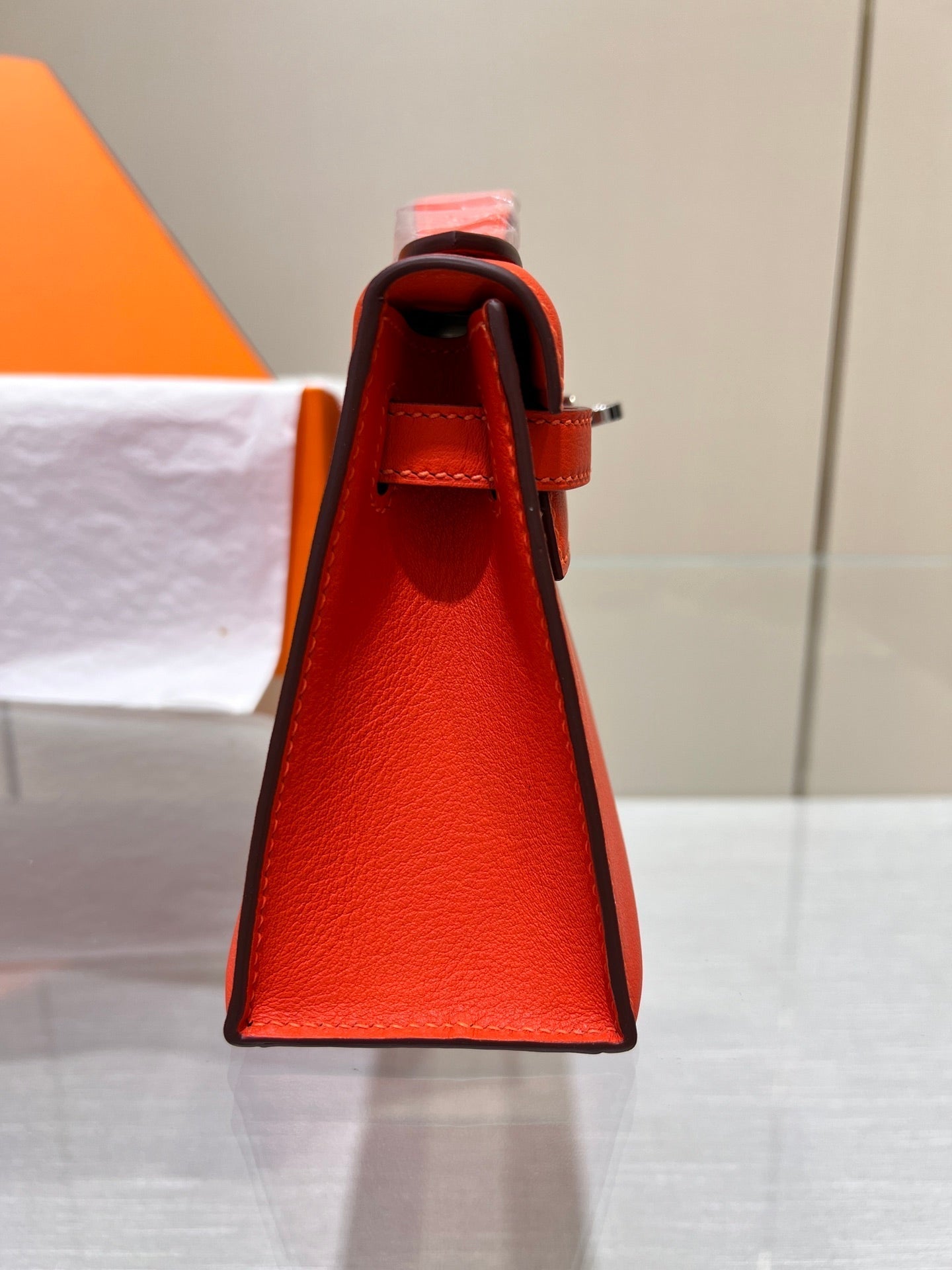 HM KELLY POCHETTE 22CM ORANGE SWIFT SILVER HARDWARE
