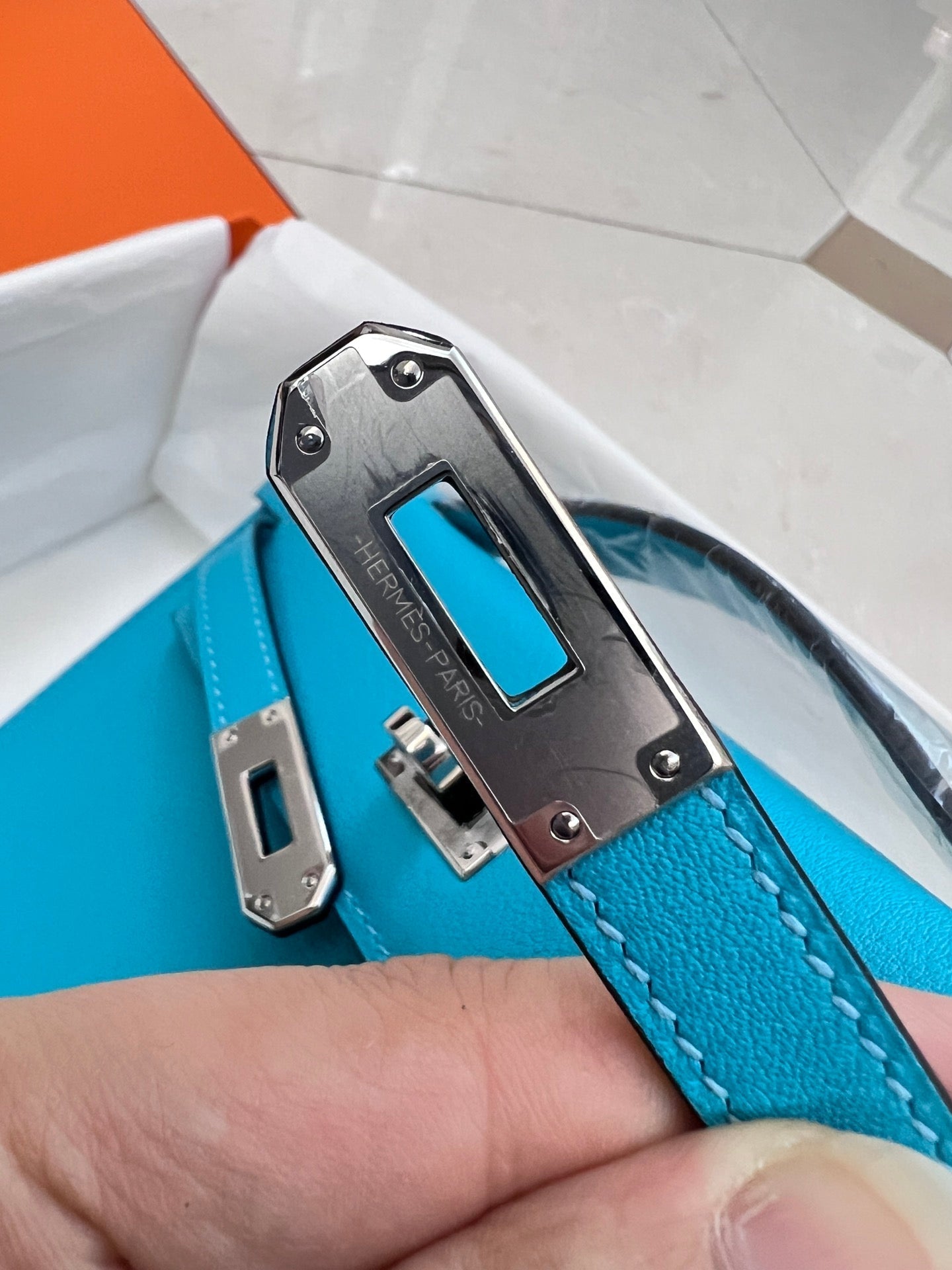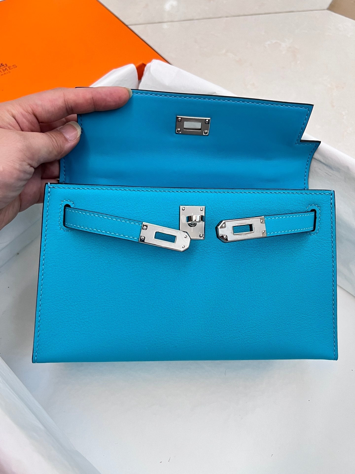 HM KELLY POCHETTE 22CM LIGHT BLUE SWIFT SILVER HARDWARE