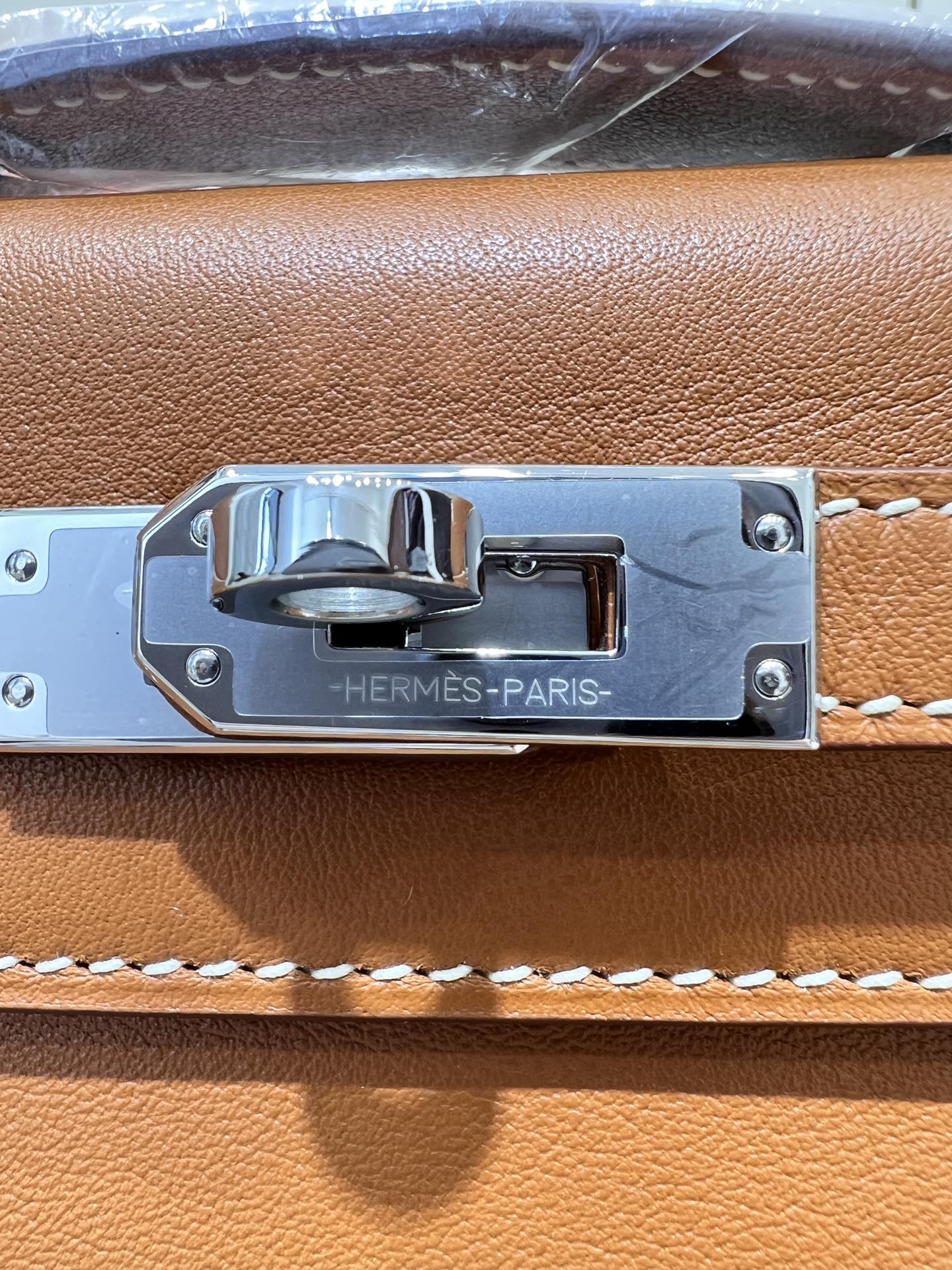 HM KELLY POCHETTE 22CM WHITE BEIGE SWIFT GOLD HARDWARE BEST