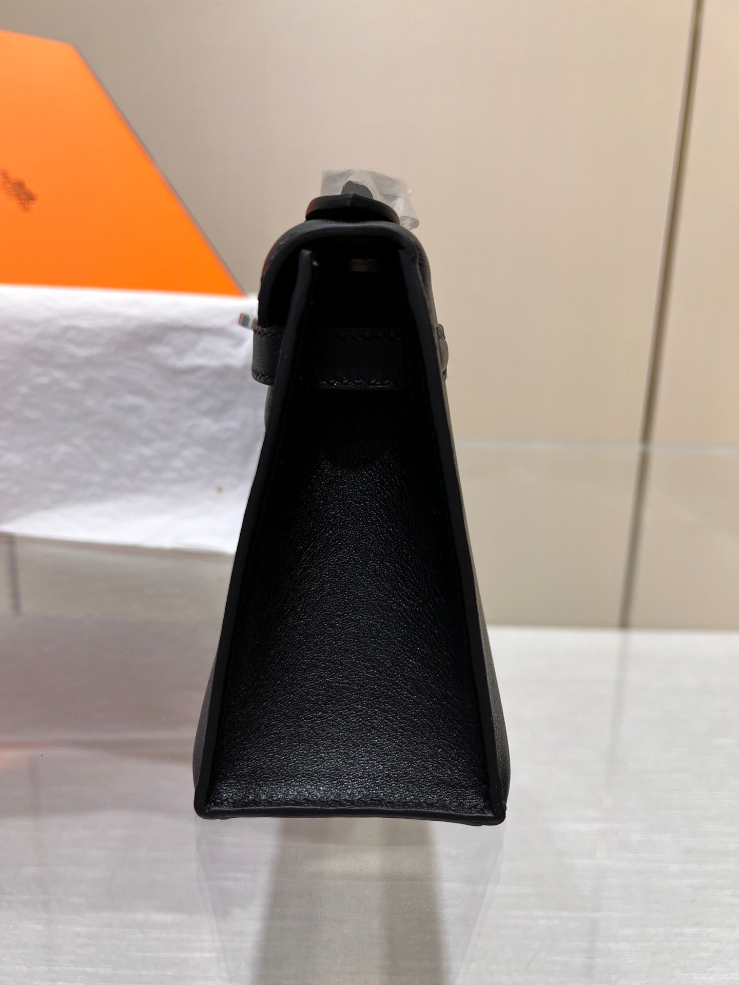 HM KELLY POCHETTE 22CM BLACK SWIFT SILVER HARDWARE