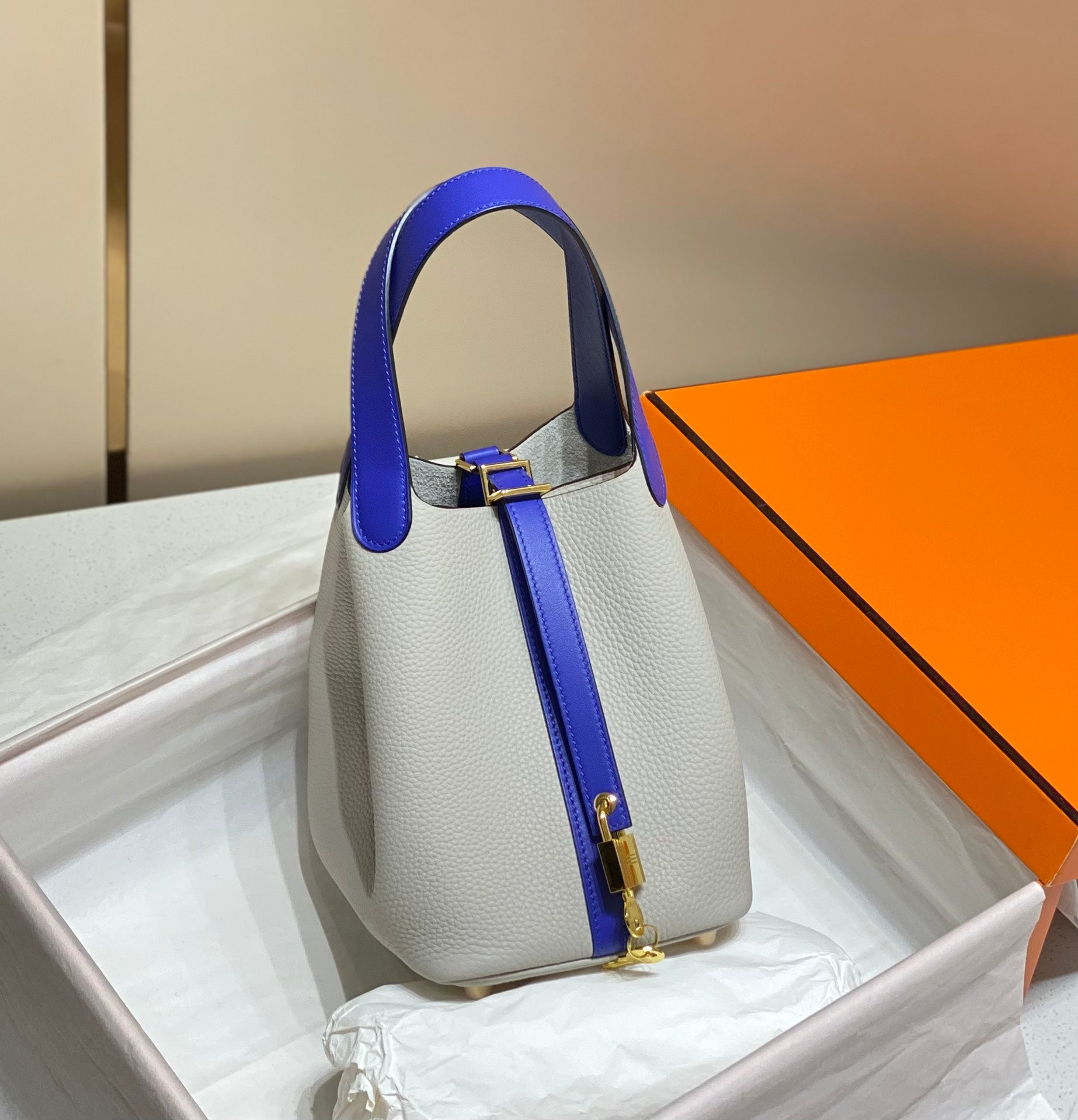 - Color: Etain, Gold hardware