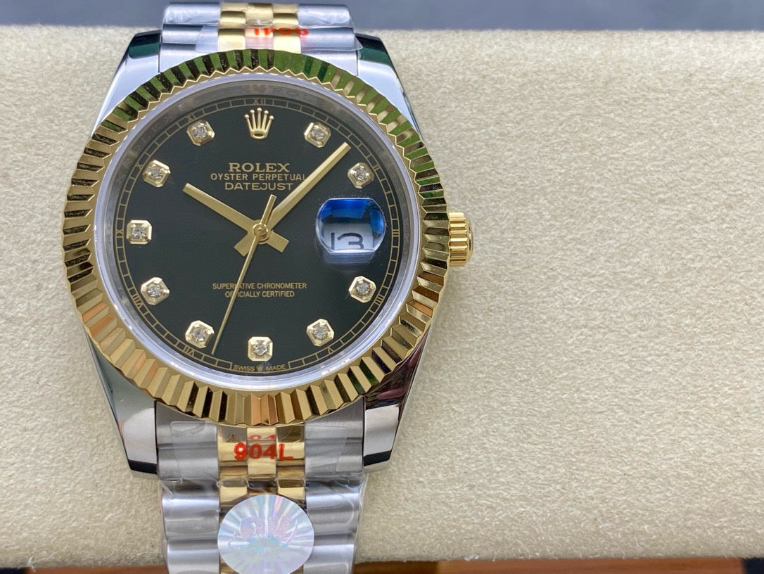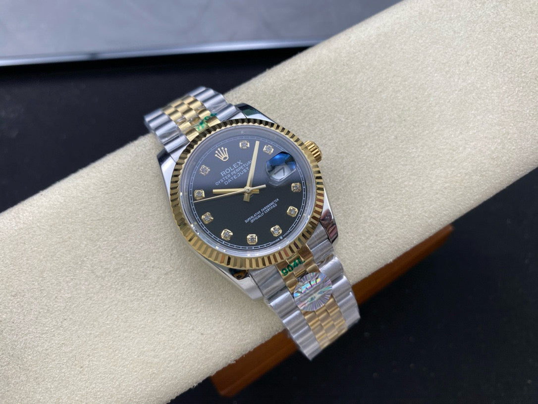 Datejust Black Diamond Dial Two Tone Yellow Gold Jubilee Bracelet