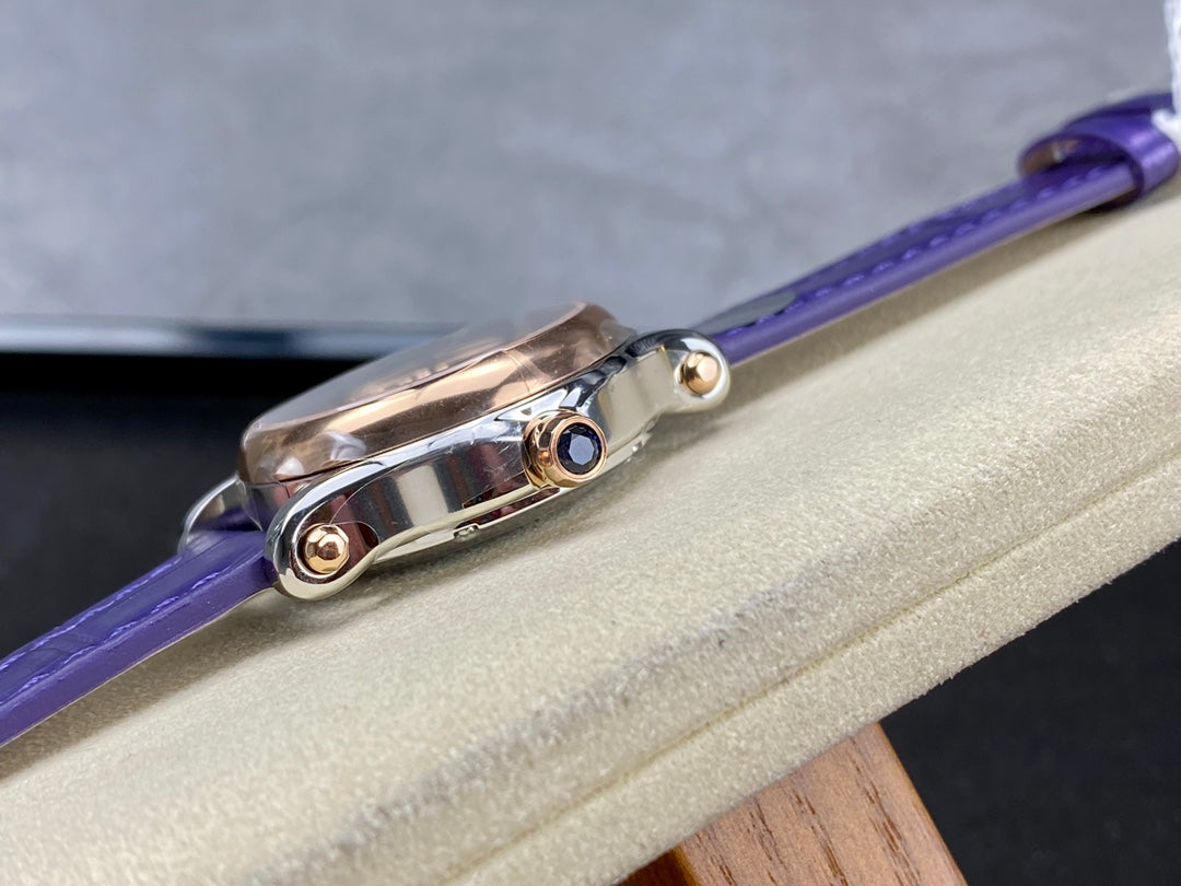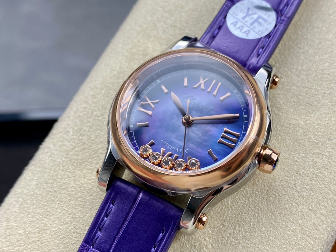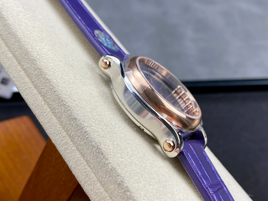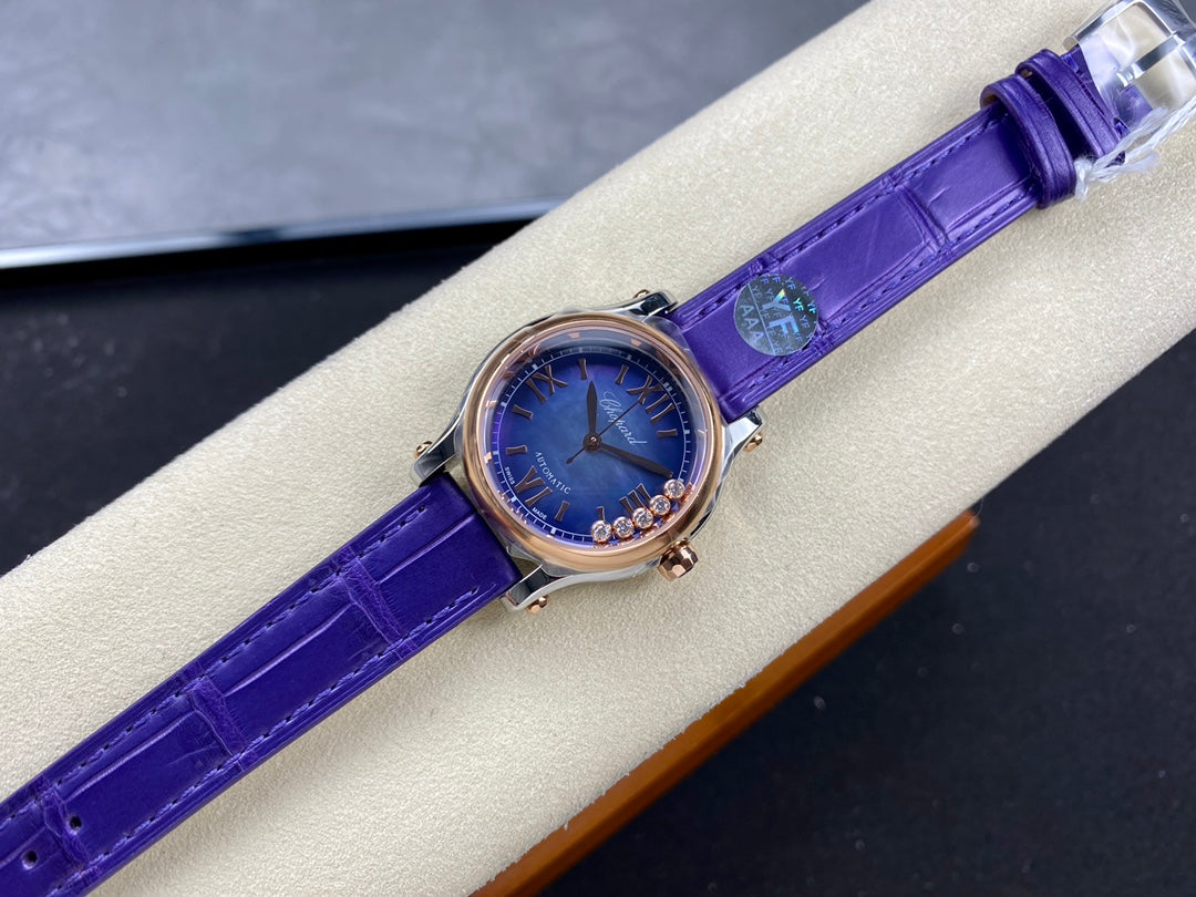 Happy Diamonds 30mm Pink Gold Blue Dial