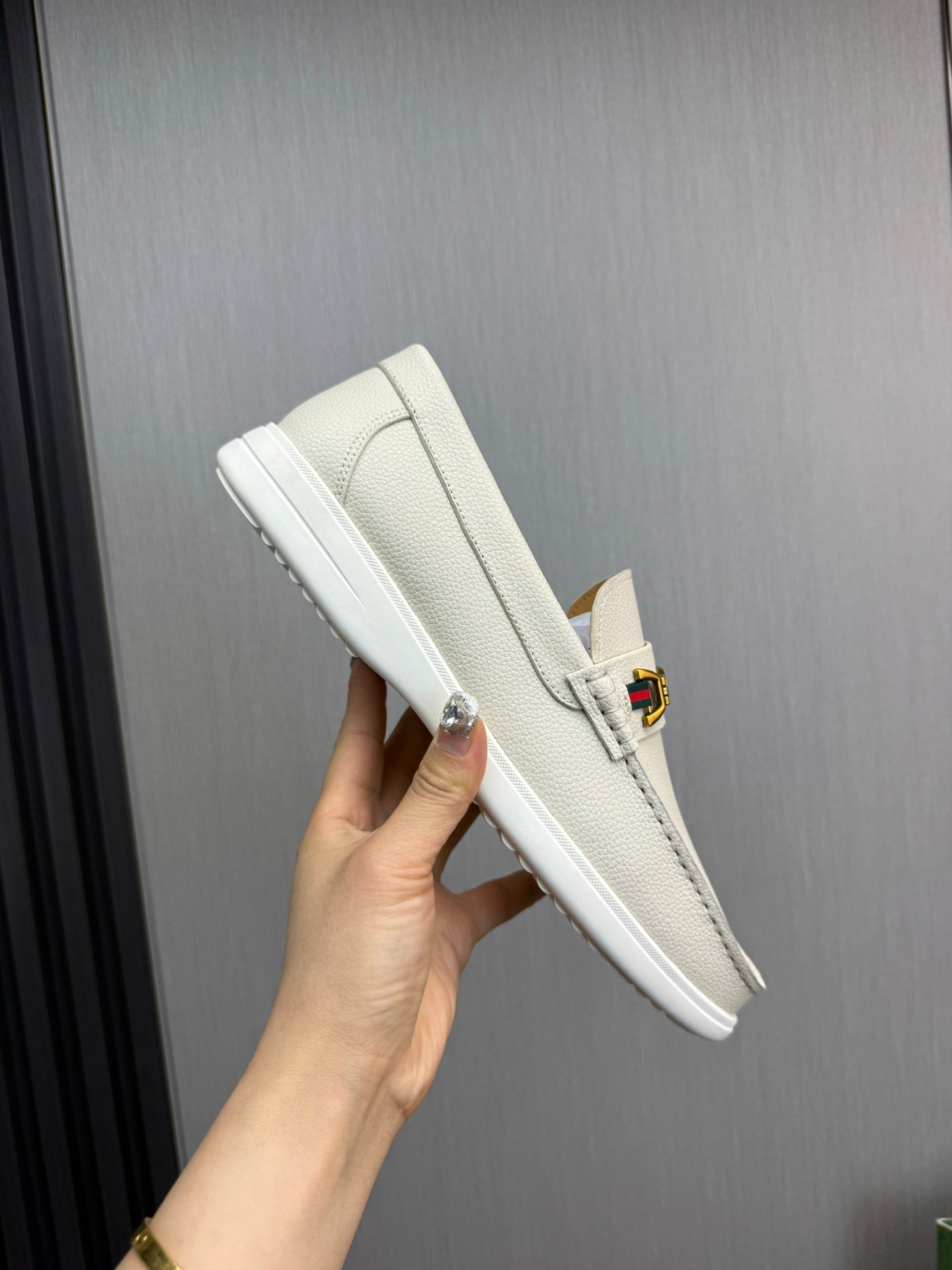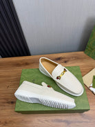 GG Men's Leather Loafers White Calfskin 587560