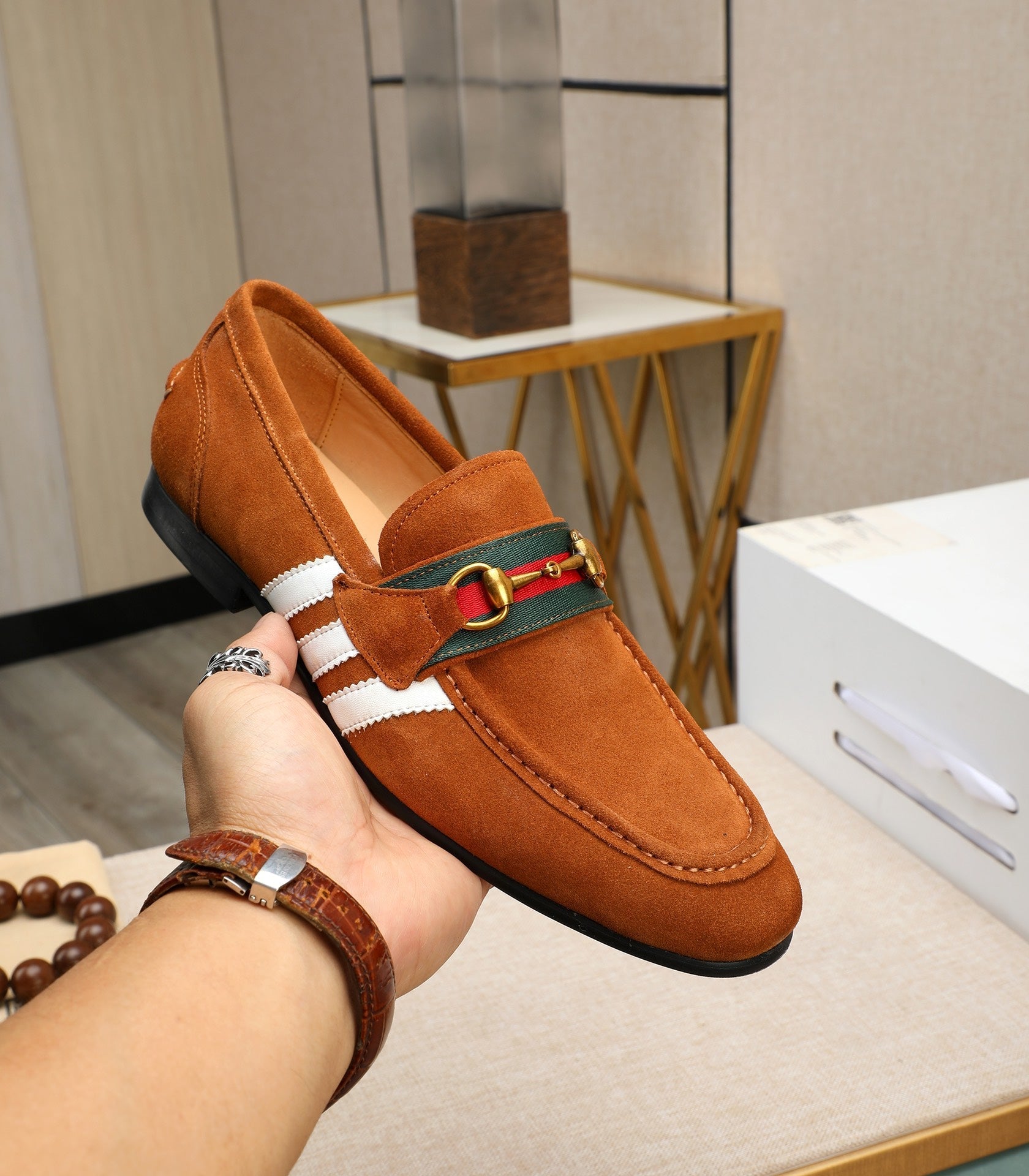 GG x Adidas Men's Jordaan Loafer Light Brown Suede 456614