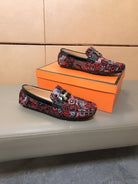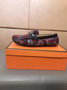 HM Men's Flower Loafer Red Black Printed Fabric Pigskin 685514