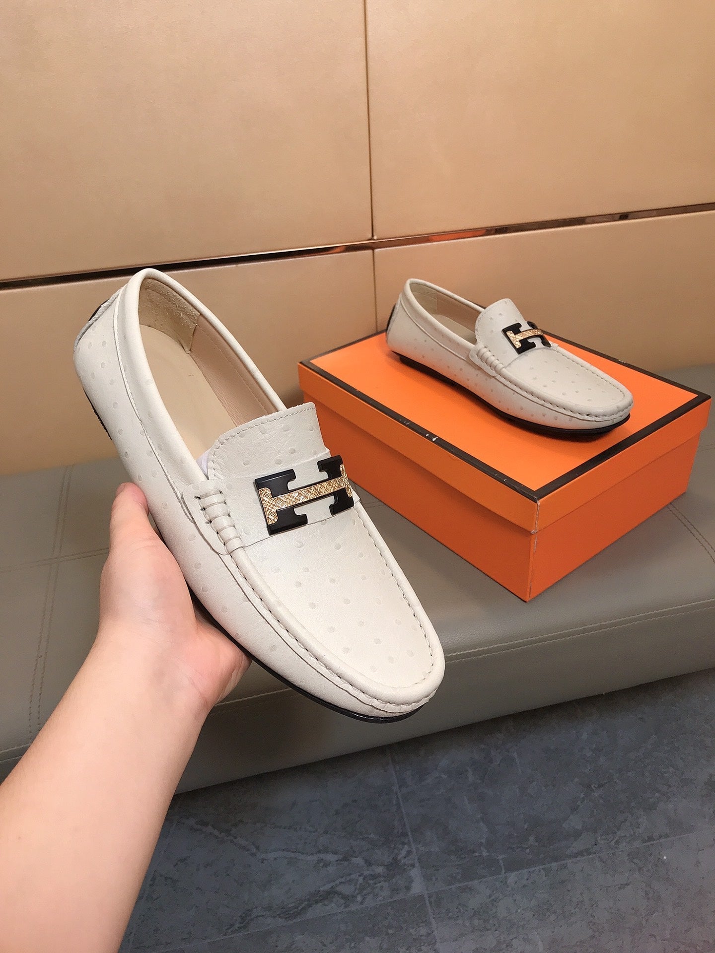 HM Men's Loafer Beige Cowhide 686623