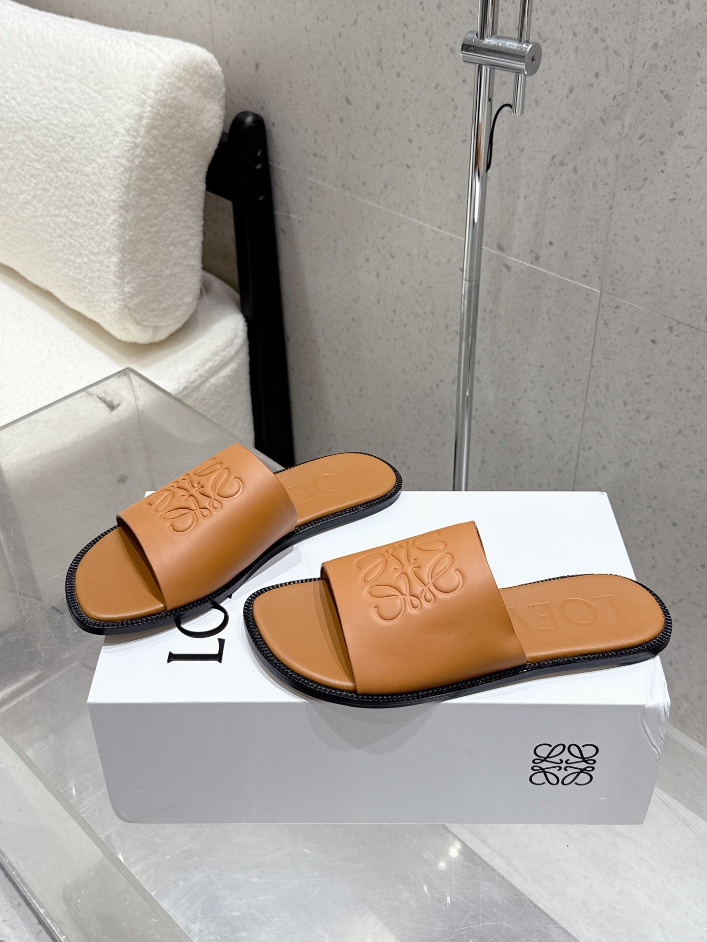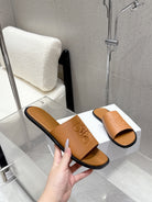 Loewe 25 flat slippers camel calfskin