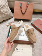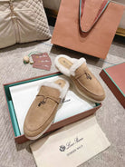 LP Charms Walk Babouche Loafer Peach Yellow Suede With Rabbit Fur Lining 206244