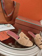 Summer Charms Sandals in Mocha Suede Maroon Lambskin