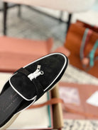 Loro Piana Black White Suede Charms Walk Flat Mules