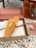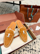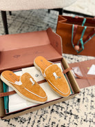 Loro Piana Salmon White Suede Charms Walk Flat Mules