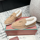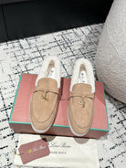 LP Summer Charms Walk Loafers In Dark Beige Mix White Suede With Rabbit Fur Lining 985652