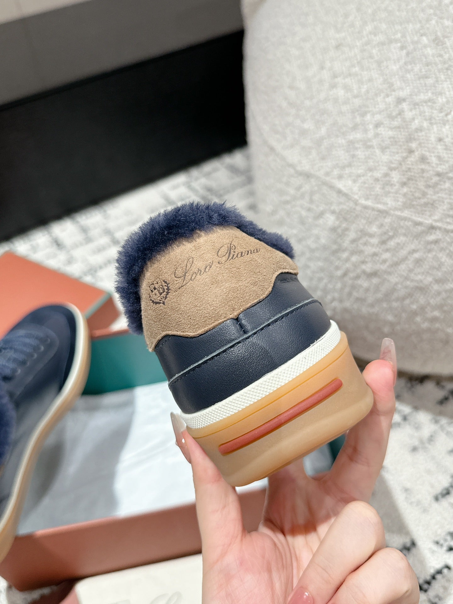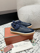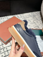 LP Tennis Walk Sneaker In Charcoal Blue Lambskin Lined With Wool Fleece 985658