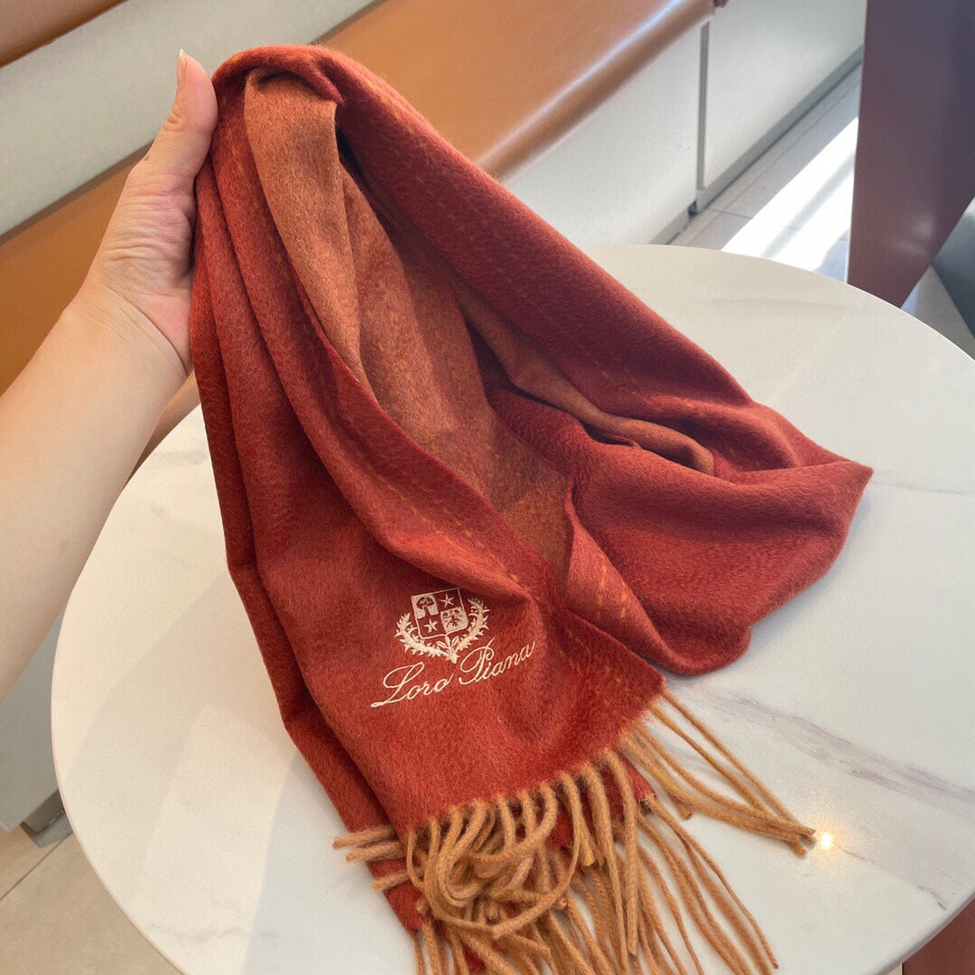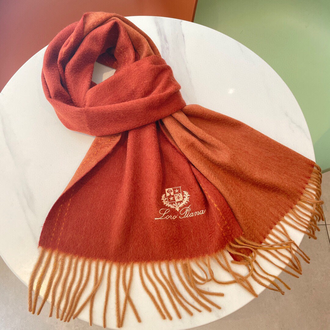 LP Grande Unita Scarf 200 CM In Red Orange Cashmere 705047