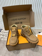 LV Checker Ankle Boots Beige Nubuck Calfskin