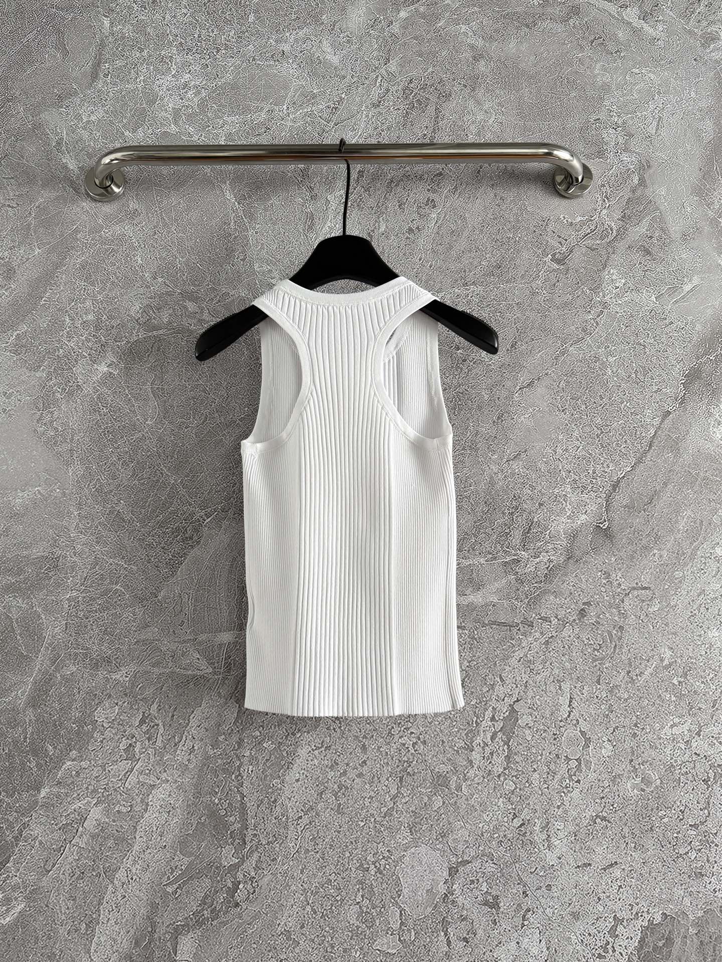 LV Chain Knitted Vest Shirt White Viscose Poliester