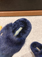 LV Flat Mule Charcoal Blue With Fur Monogram Suede