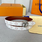 LV S-LOCK BELT 20 MM IN BRONZE BROWN CALFSKIN AND CIRCLE SILVER HARDWARE