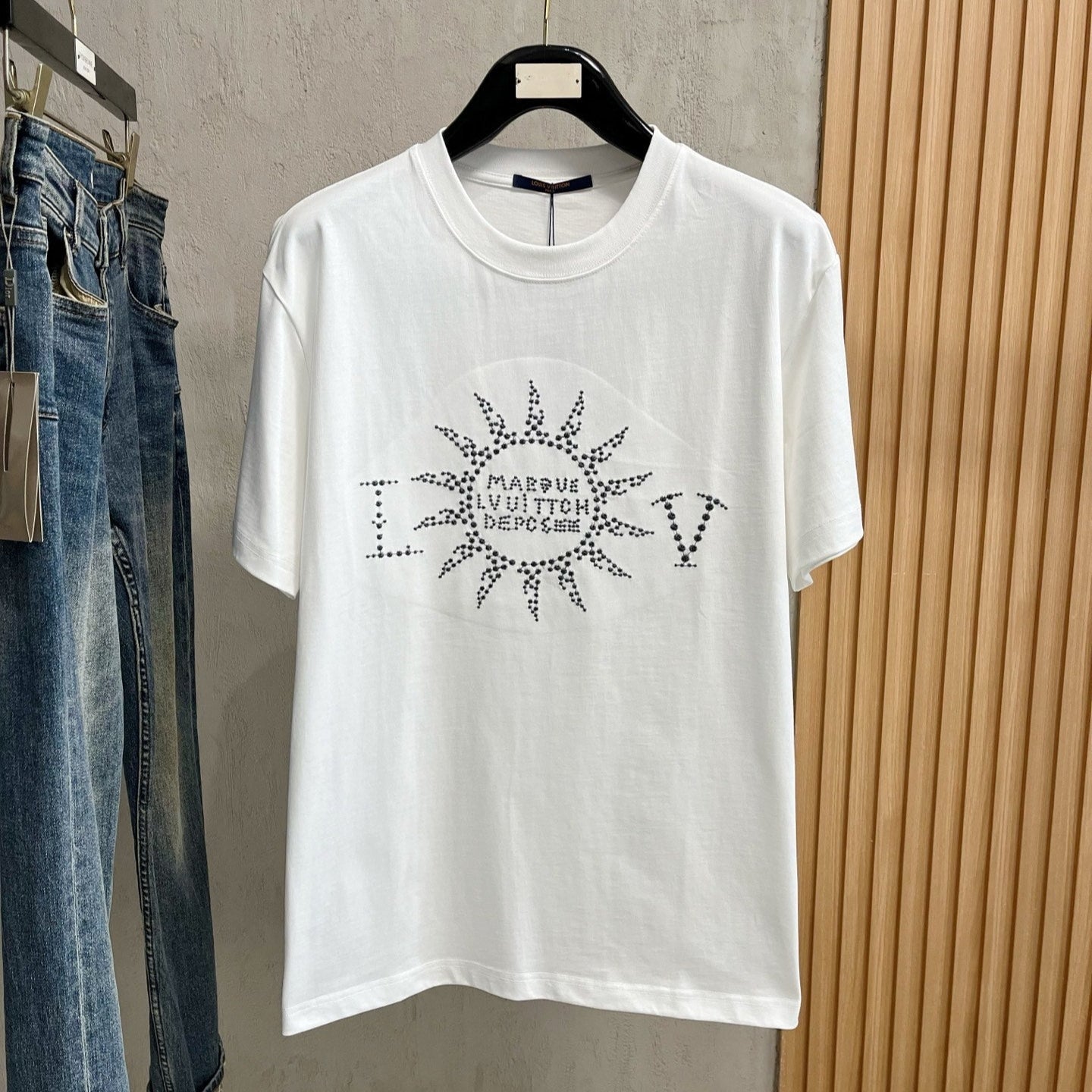 LV T-SHIRT LOGO EMBROIDERED WHITE COTTON 238805