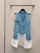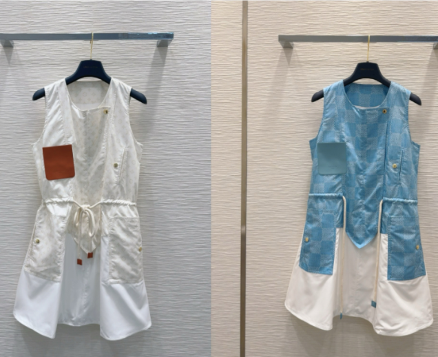 LV 25 Checkered Shirt With Pocket Dynamic Dress White Blue Polyester