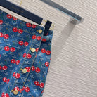 LV 25 Cherry Denim Skirt Blue Cotton