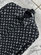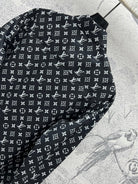 LV 25 Flower Barrage Print Lapel Shirt Black Polyester