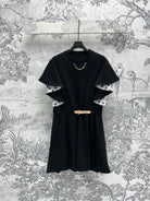 LV 25 Lotus Leaf Short Sleeve Dress Black Cotton