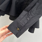 LV 25 Pleated Waist Round Neck Shirt Black Cotton