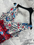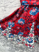 LV 25 Retro Floral Pattern Suspender Flower Dress Red Poliester