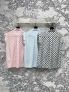 LV 25 Retro Hong Kong Small Flying Sleeve Shirt Pink Black Blue Viscose Rayon