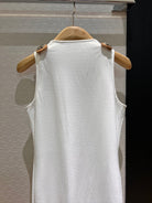 LV Double-Head Zipper Design Slits Dress White Cotton