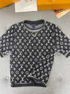 LV Simple Elegant Design T-shirt Black Cotton Wool