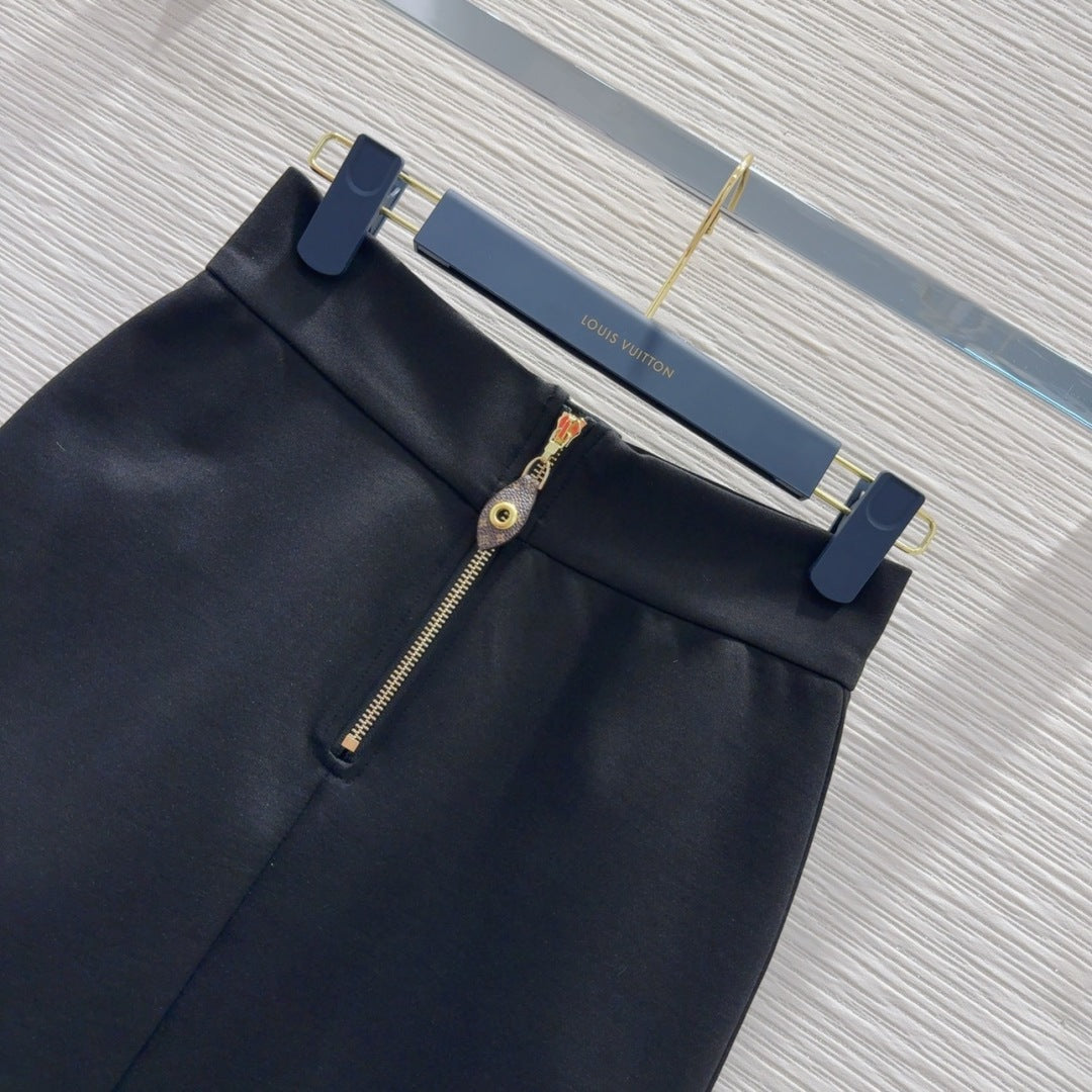 LV 25 Long Skirt Logo Black Polyamide Wool