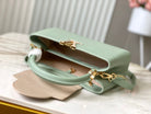 capucines mm 31.5 green beige taurillon leather gold hardware