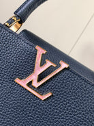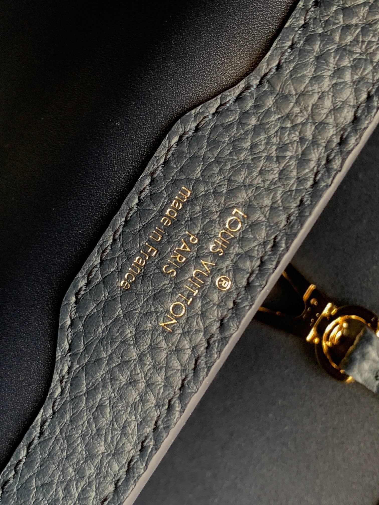 capucines mm 31.5 midnight blue taurillon leather gold hardware