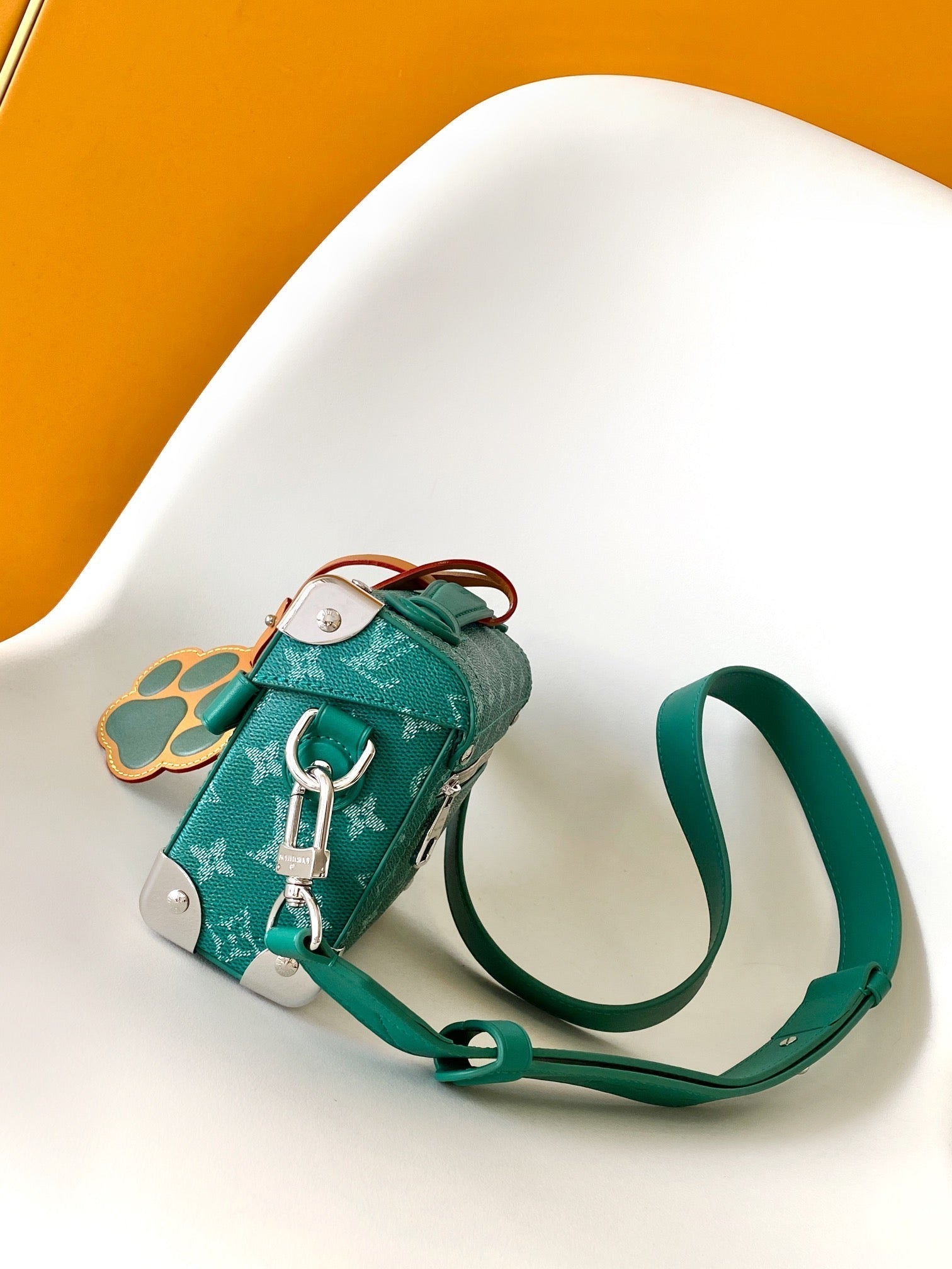 LV Soul Trunk handbag 19cm Green mix White Canvas Leather 252098