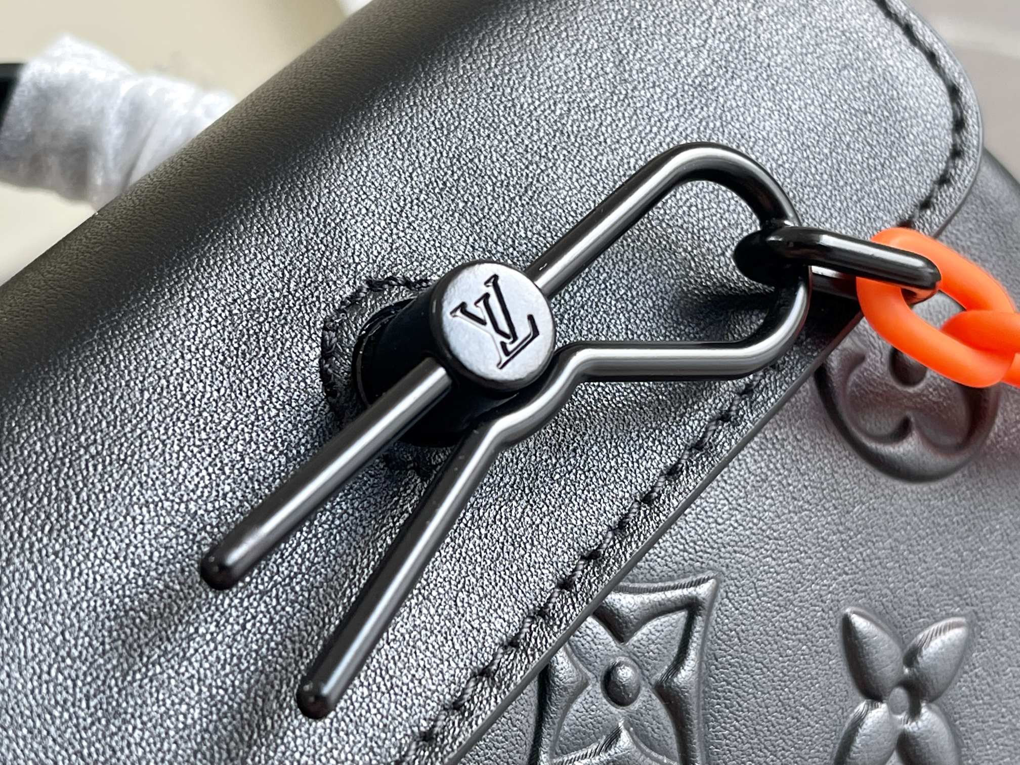 • Black mat color hardware with orange chain
