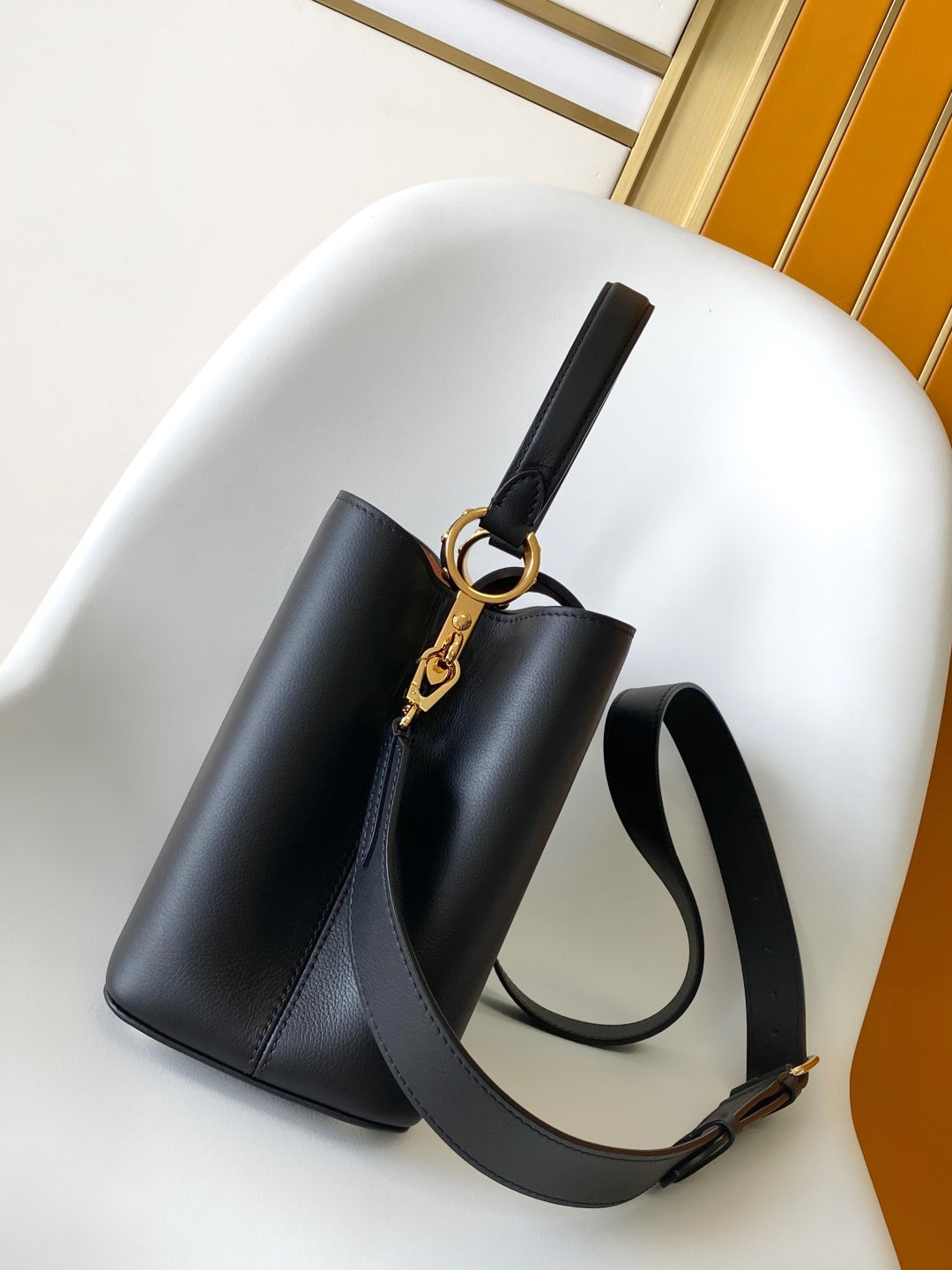 CAPUCINES GM 33CM BLACK GOLD TAURILLON LEATHER 252021