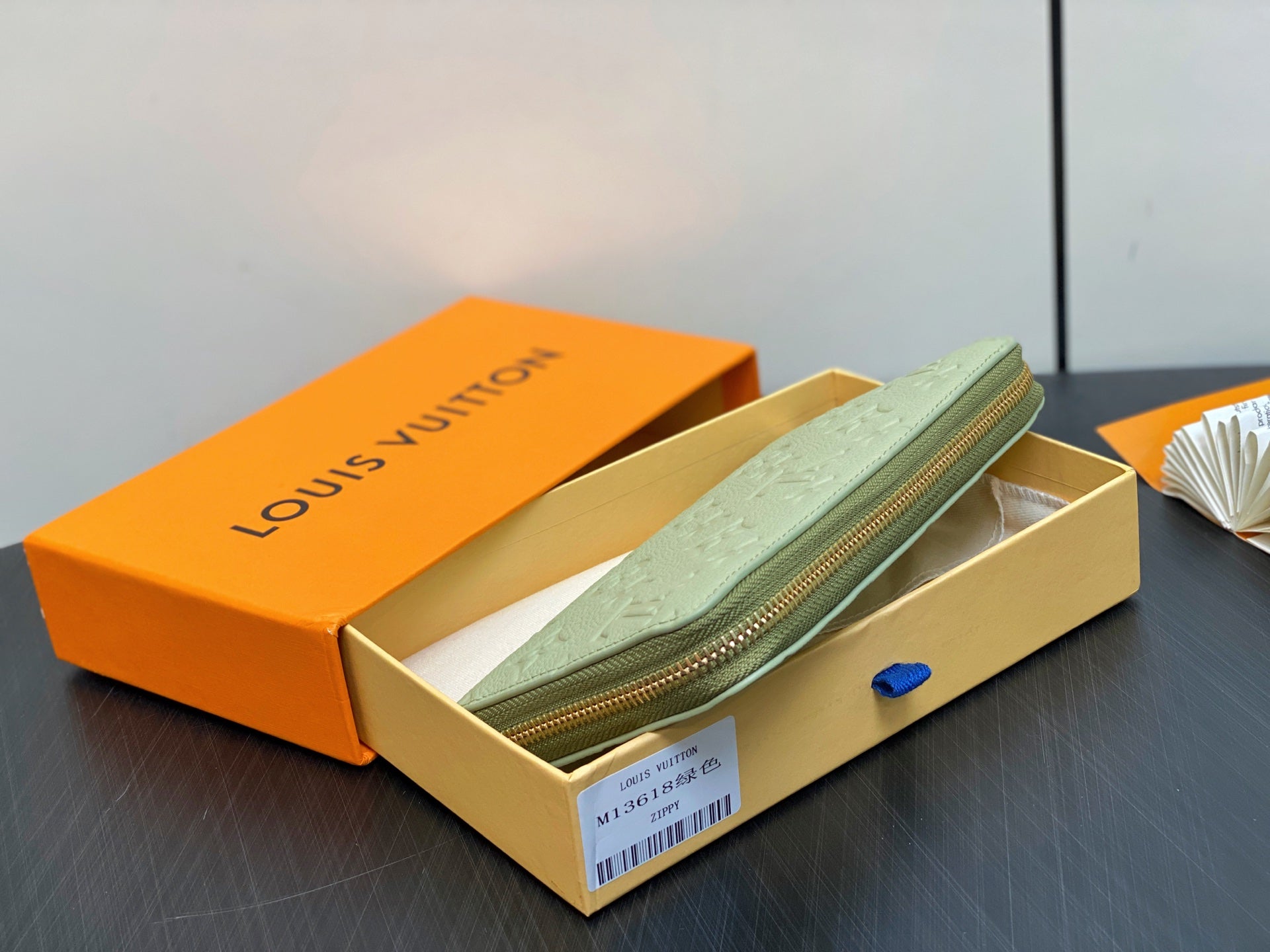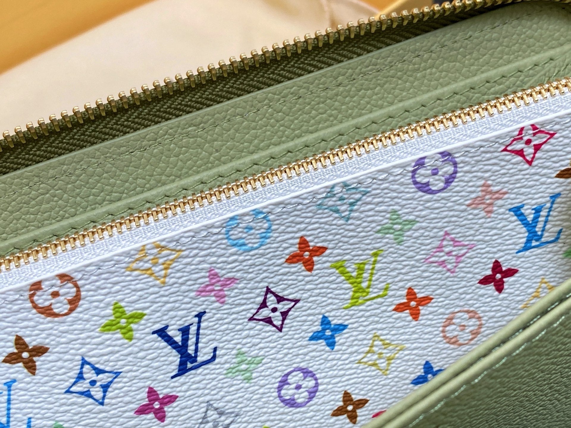 LV × TM Zipper Wallet Green Gold Leather 329877