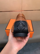 LV LOAFERS IN RUSSET BROWN CALFSKIN WITH BRANDED EMBOSSING