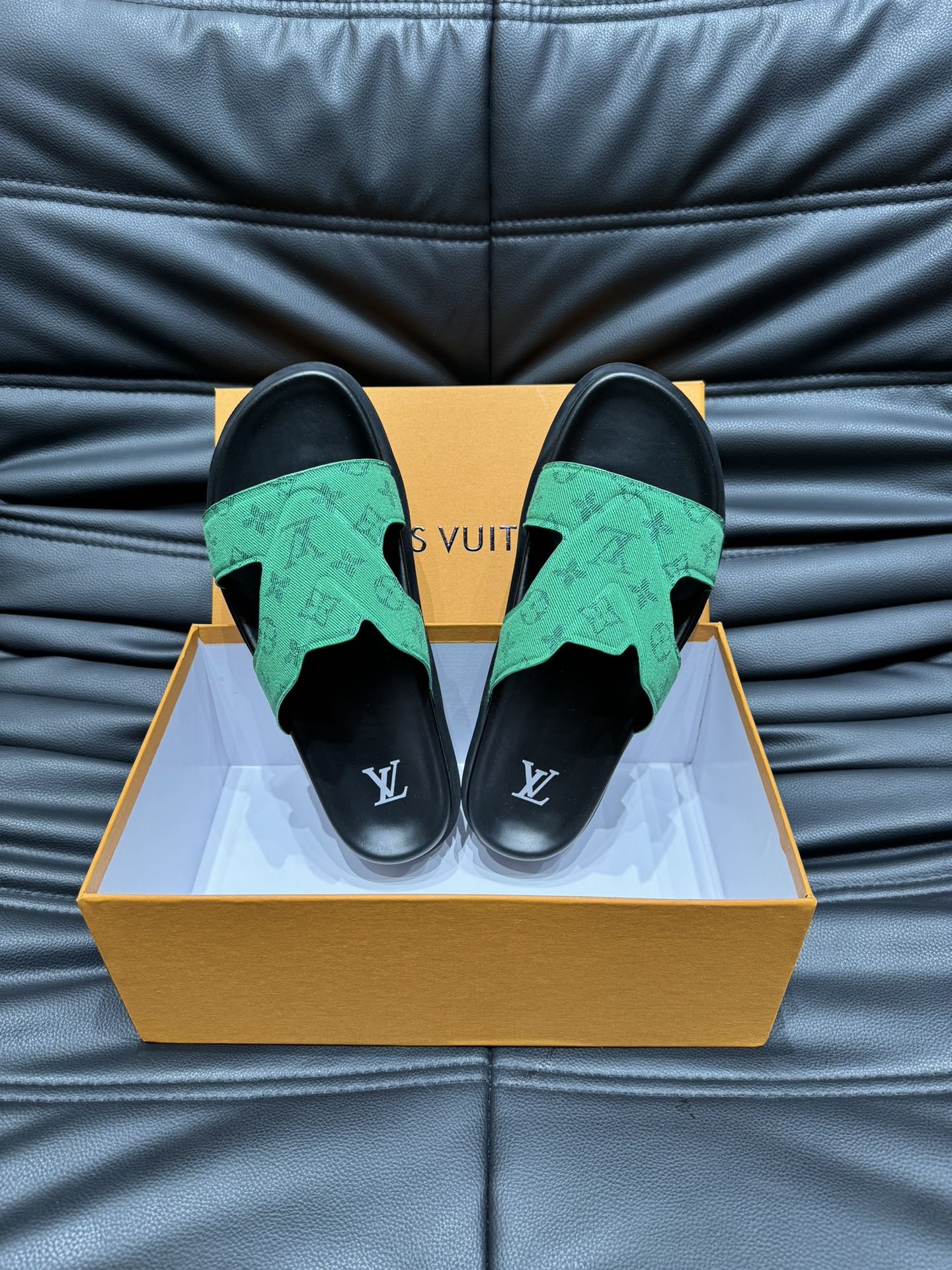 LV OASIS MULE IN EMERALD GREEN MONOGRAM JACQUARD