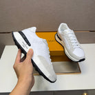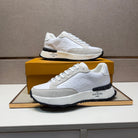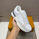 LV TRAINER SNEAKER WHITE EMBOSSED CALFSKIN AND GREY SUEDE